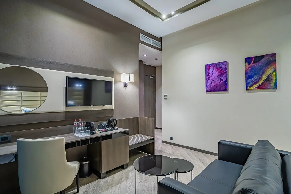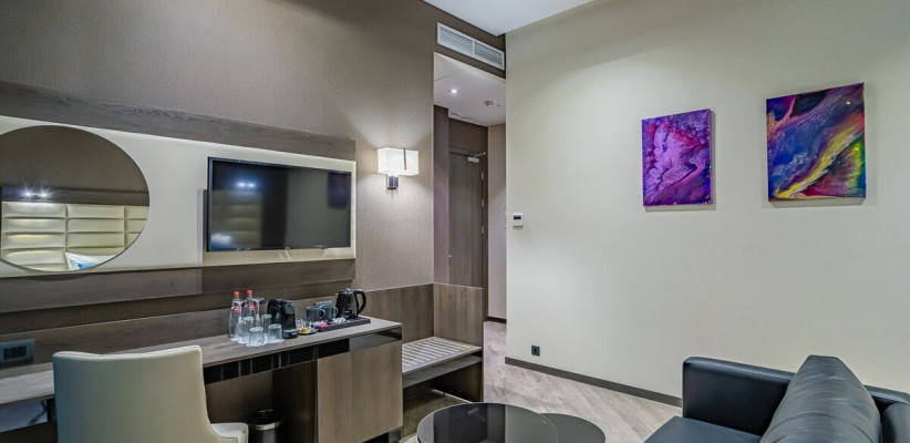 30-35 м2, две односпальные или двуспальная кровать, диван, гостиная зона, рабочая зона. Количество гостей: 3.Премиум Эксклюзив