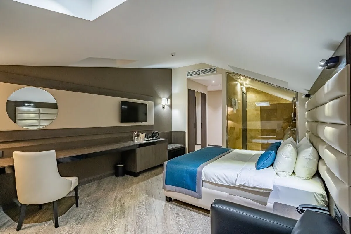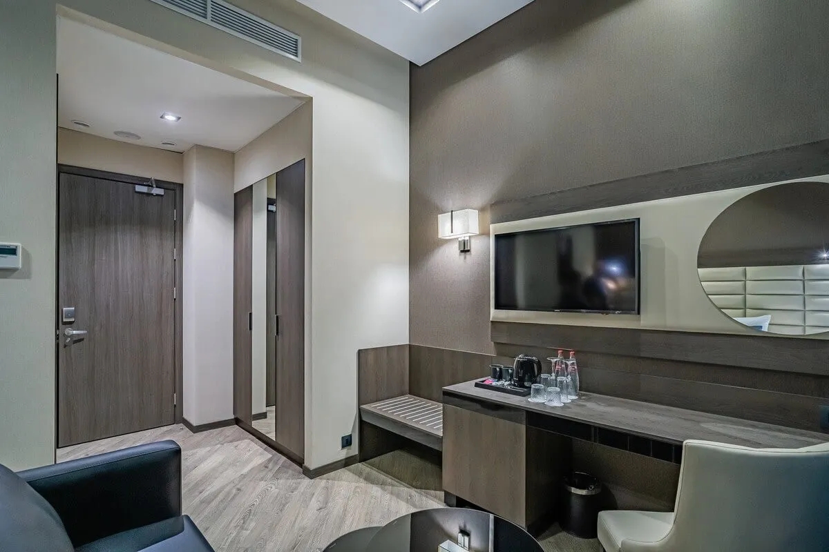 Фг отель расположен в удобной локации недалеко от центра, сочетая комфортное размещение и развитую инфраструктуру для отдыха и деловых поездок. Туристов ждут уютные номера с кондиционером и рабочей зоной, ресторан с разнообразным меню, бесплатный Wi-Fi и внимательный сервис. Расстояние до аэропорта составит 7 км (примерно 15 минут на автомобиле).