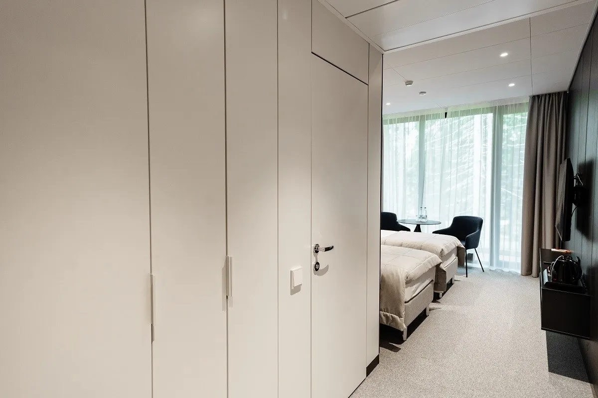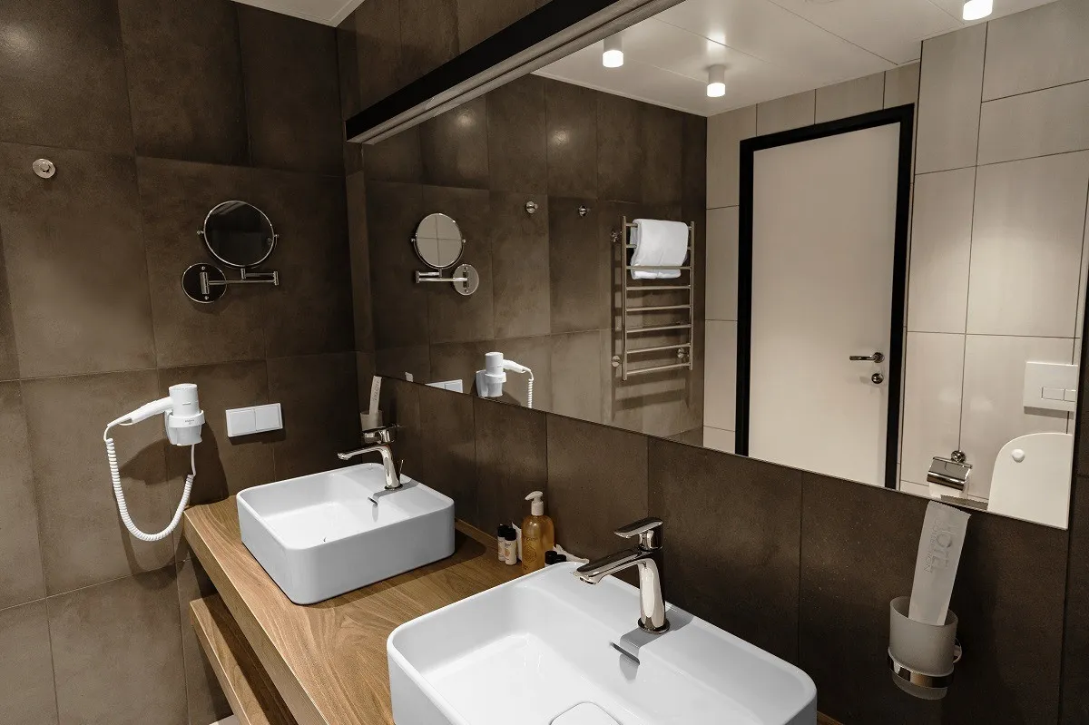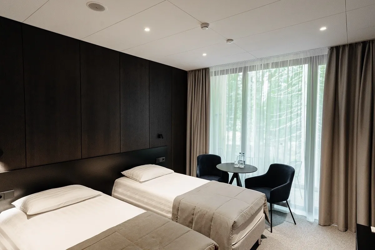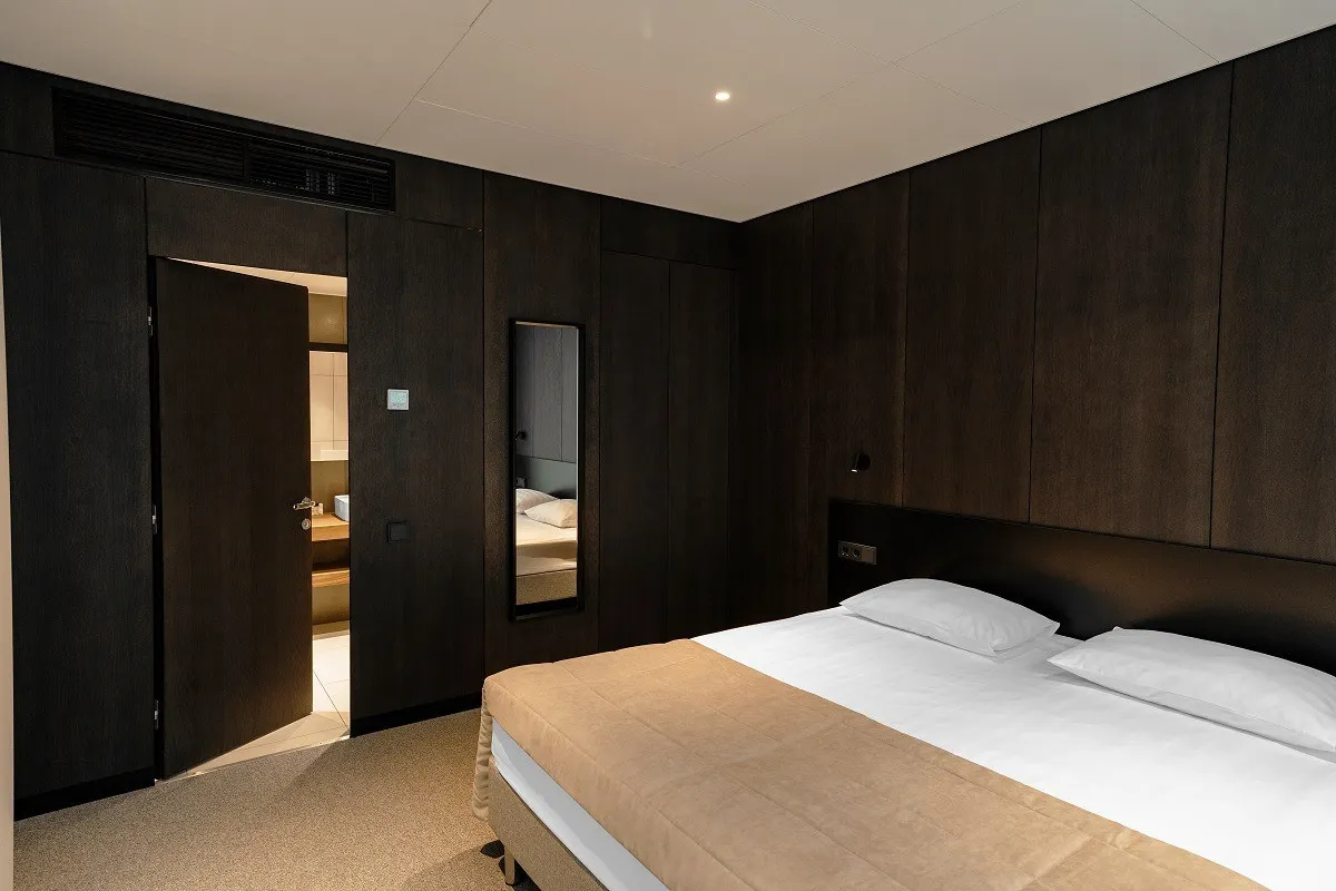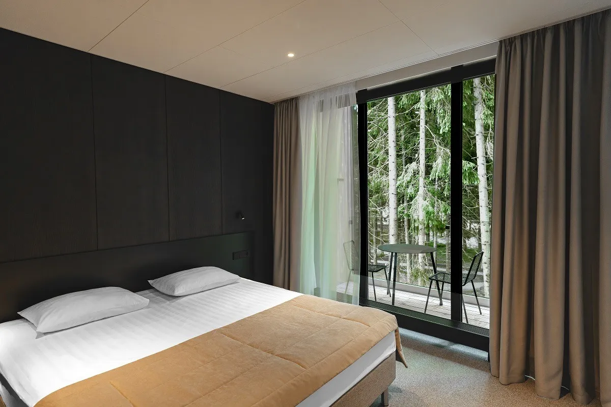 Номерной фонд отеля составляет 64 номера. В дизайне приоритет отдан простоте, функциональности и уюту, а в интерьерах использованы натуральные природные оттенки и материалы. -