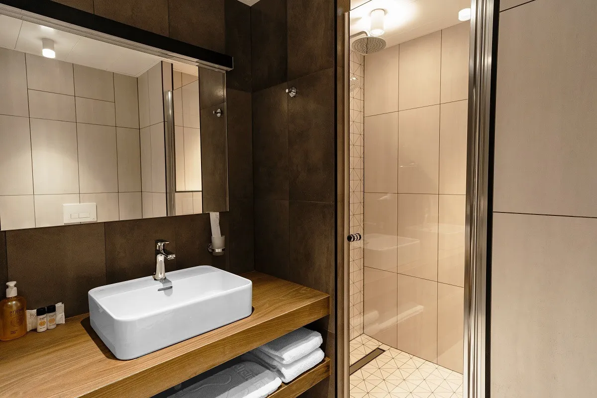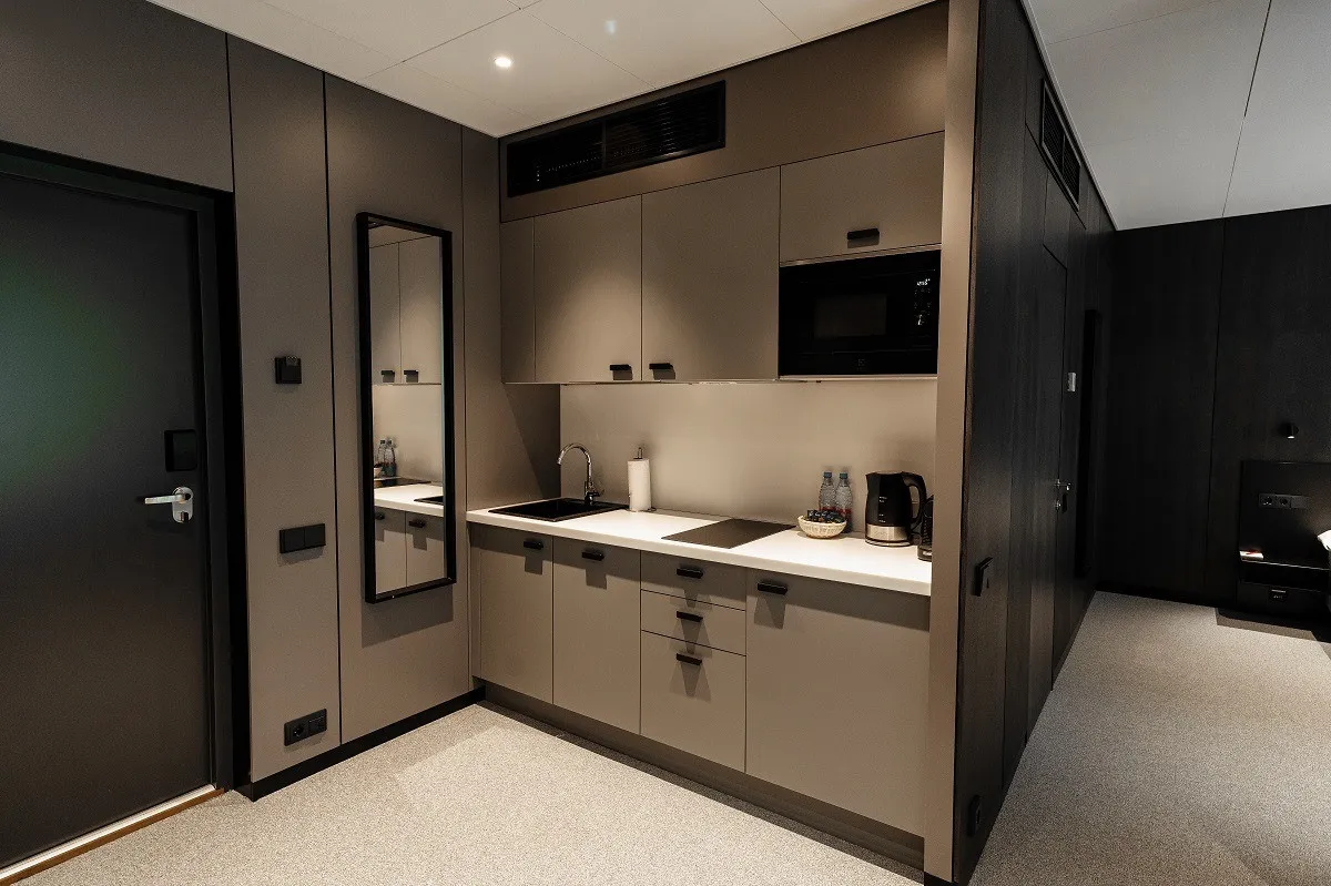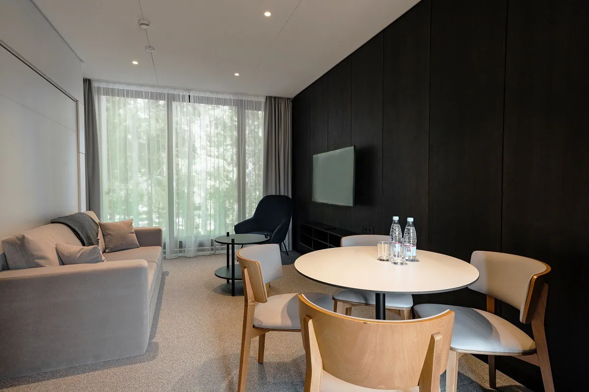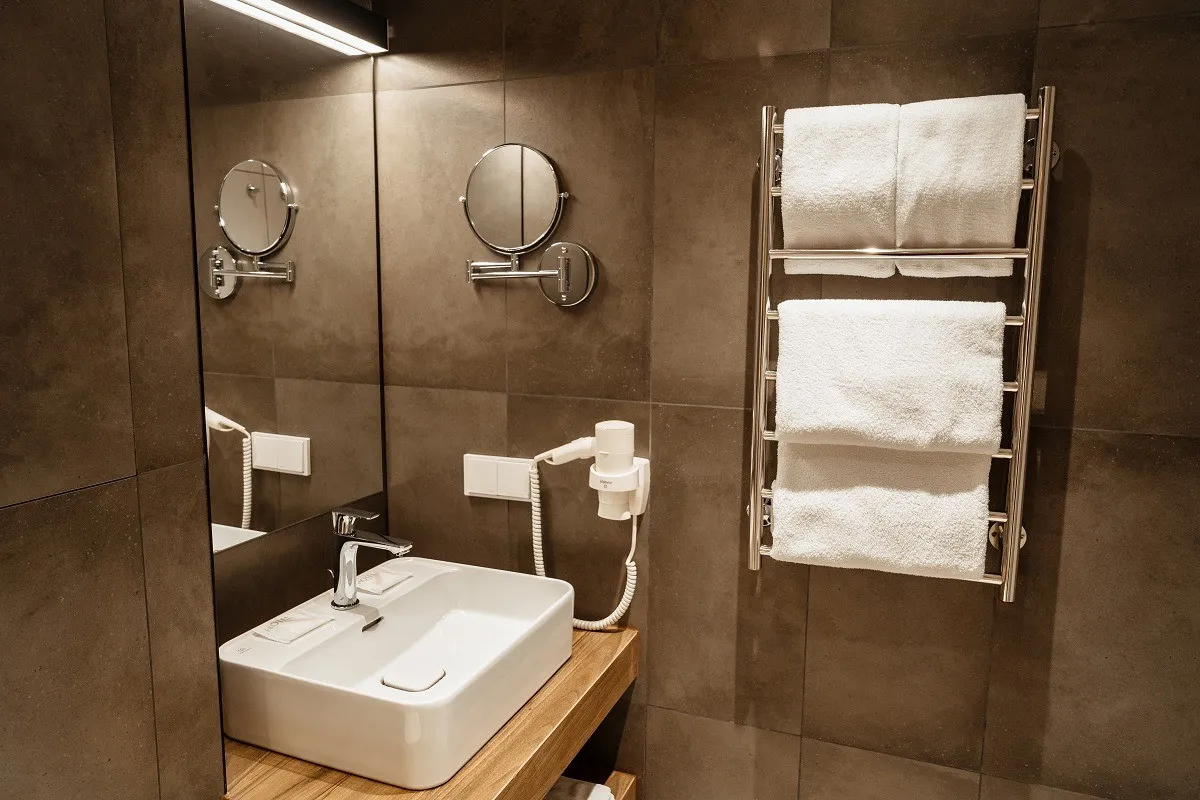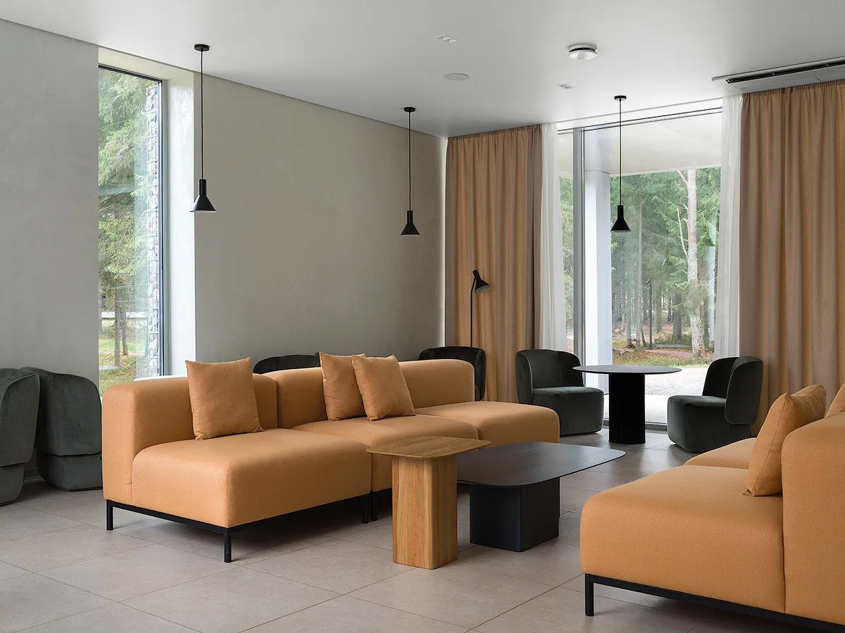 Номерной фонд отеля составляет 64 номера. В дизайне приоритет отдан простоте, функциональности и уюту, а в интерьерах использованы натуральные природные оттенки и материалы. -