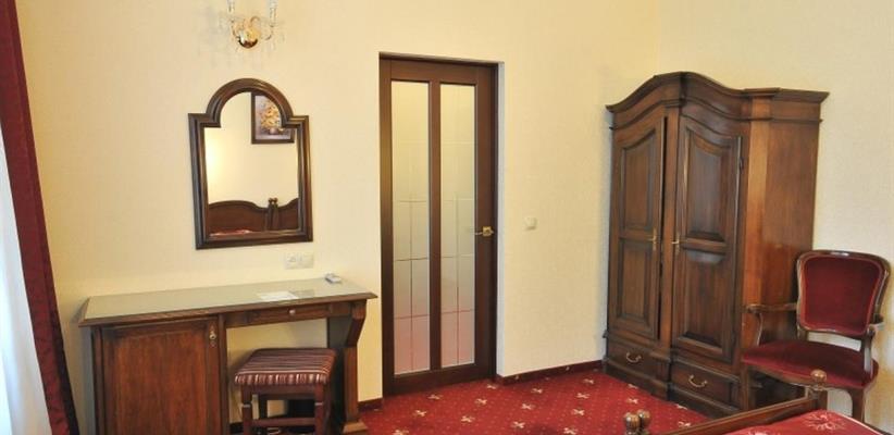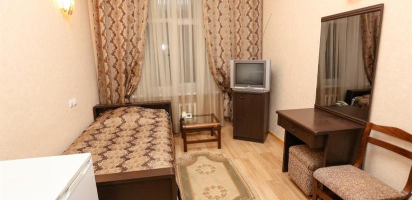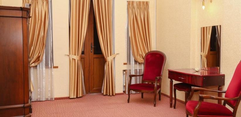 Отель «Империал» разместился в историческом центре Владикавказа в шаговой доступности от главных достопримечательностей североосетинской столицы. Рядом – художественный и краеведческий музей, парк Хетагурова, набережная реки Терек. До железнодорожного вокзала – около 3 километров, до аэропорта можно доехать за полчаса. Отель разместился в трехэтажном историческом особняке, построенном в конце XIX века архитектором Марандовым в стиле эклектики. Гостей ожидают номера категории Стандарт, Бизнес, Люкс. В номерах классический интерьер, в котором используются благородные алые оттенки, качественная крепкая мебель, санузел с ванной и необходимая бытовая техника – кондиционер, телевизор, мини-холодильник. В отеле работает бар и ресторан, где гости могут заказать себе завтраки, обеды и ужины. На всей территории ловит сеть wi-fi, для автолюбителей перед корпусом организована охраняемая парковка. Завтрак шведский стол Парковка: открытая охраняемая платная Рестораны и бары: бар, ресторан Салон красоты Интернет: wi-fi в лобби Как добраться: Самолетом до аэропорта г. Владикавказ, далее на машине или такси. Поездом до ж/д вокзала г. Владикавказ, далее на маршрутке №45 до остановки «Ул. Горького», далее пройти пешком 258 м до гостиницы. Рекомендуем заказывать трансфер.
