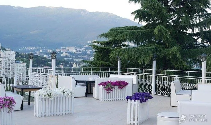 Завтрак — шведская линия с 08:00 до 10:00.На территории отеля находятся 2 бара и ресторан с банкетными залами, готовыми принять от 20 до 100 гостей, открытой террасой с видом на Ялту и VIP-верандой.