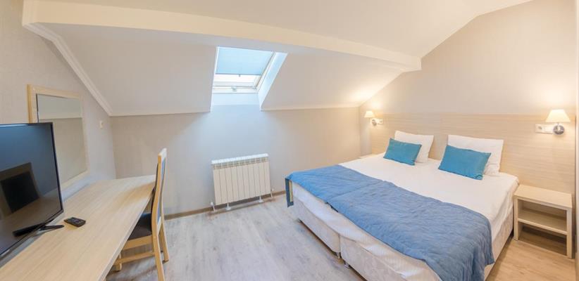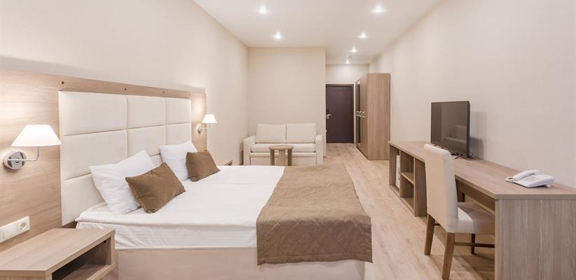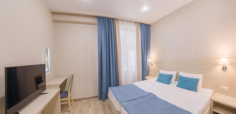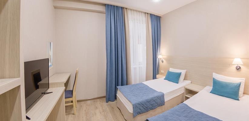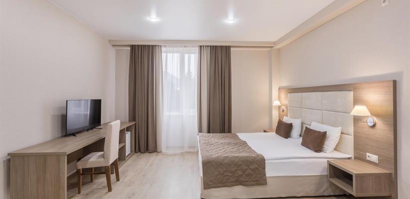 На территории отеля работает кафе с русской, кавказской и европейской кухней.