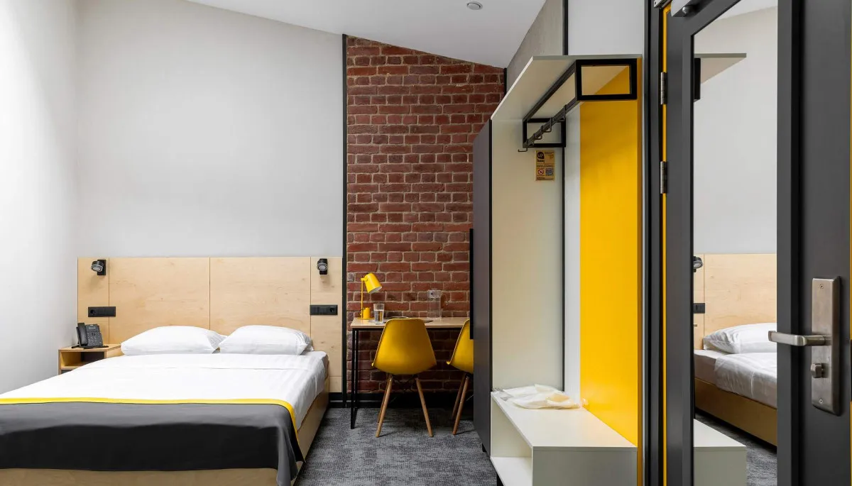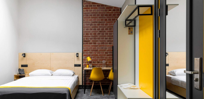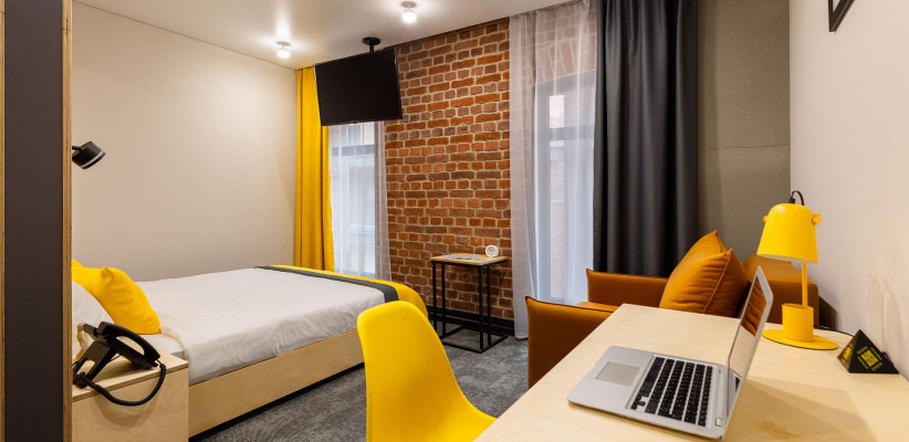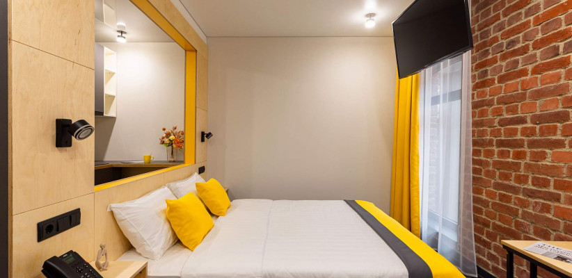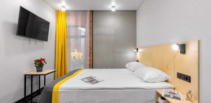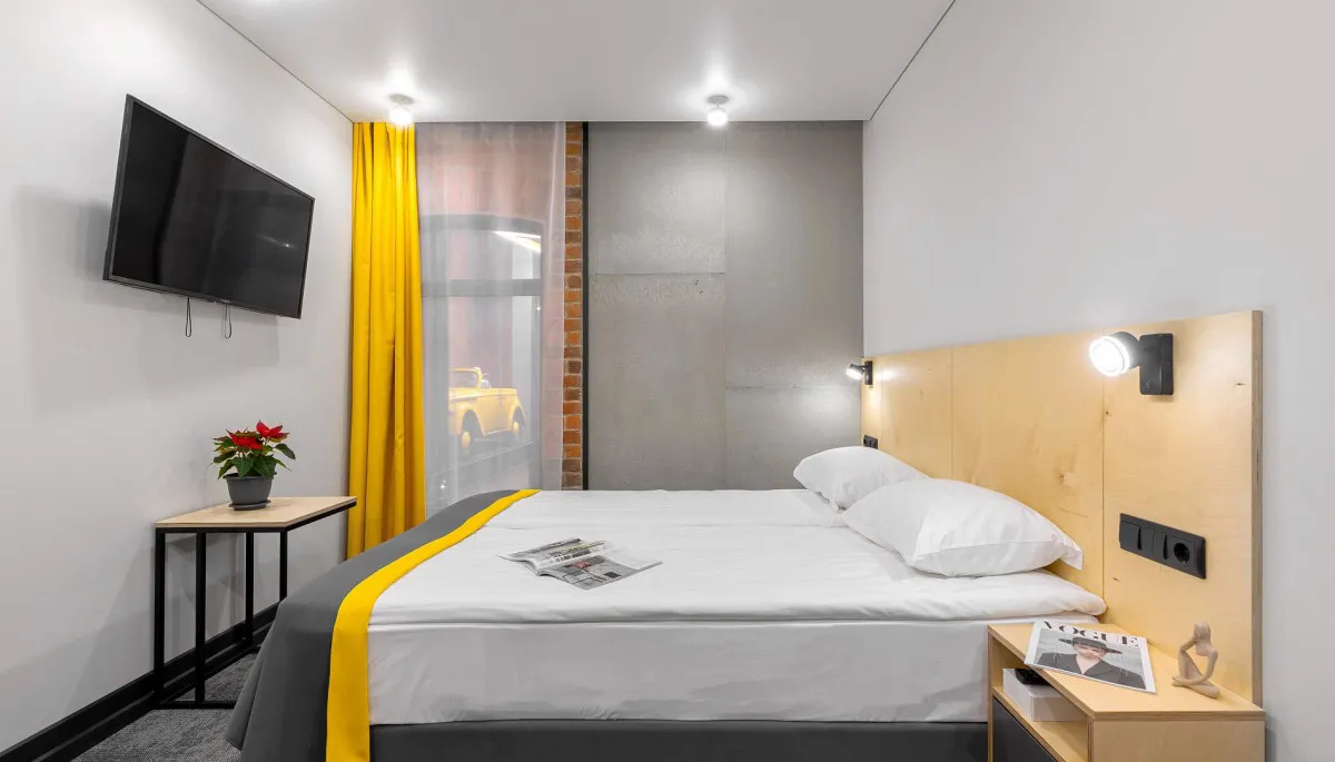 16-18 м2, номер выполнен в стиле лофт с удобной двуспальной 160х200 или двумя односпальными кроватями 80х200 с ортопедическими матрасами. Количество гостей: до 2Comfort с 1 двуспальной кроватью