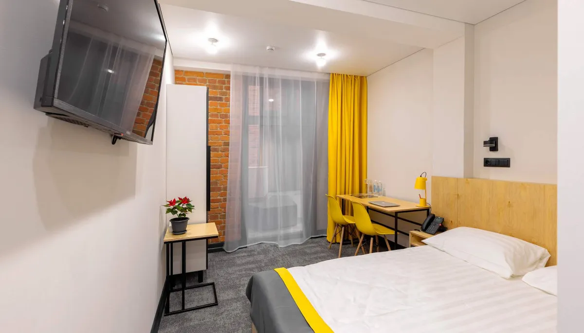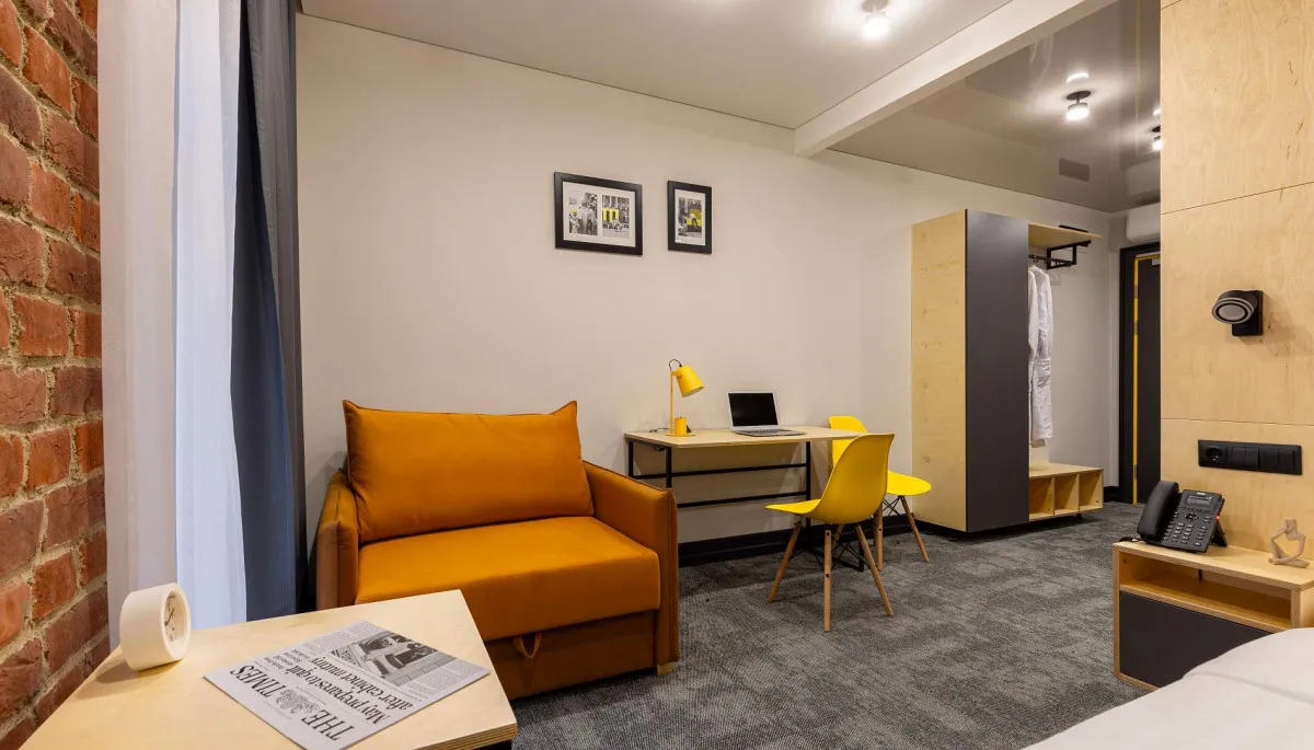 16-18 м2, номер выполнен в стиле лофт с удобной двуспальной 160х200 с ортопедическим матрасом. Количество гостей: до 2Junior Suite