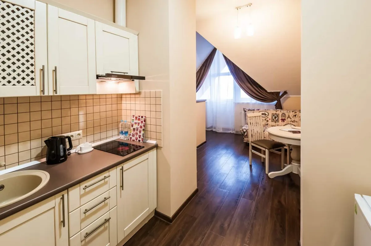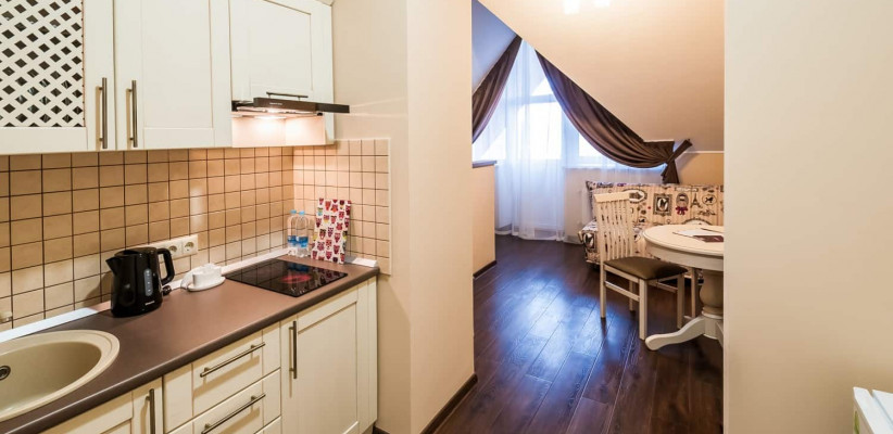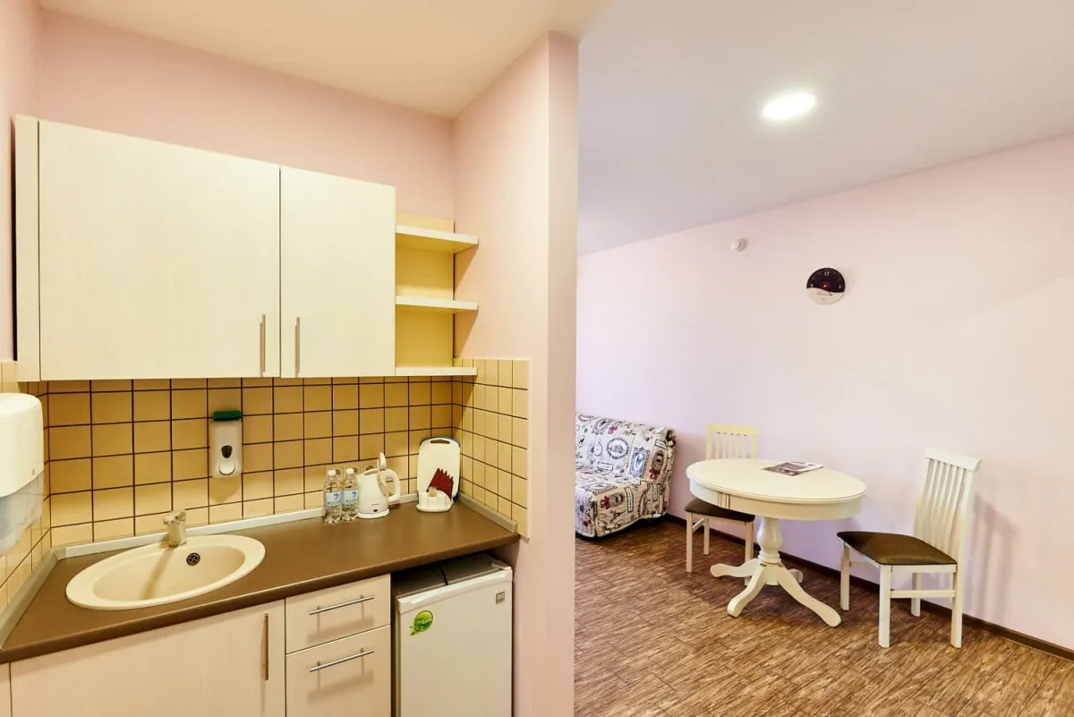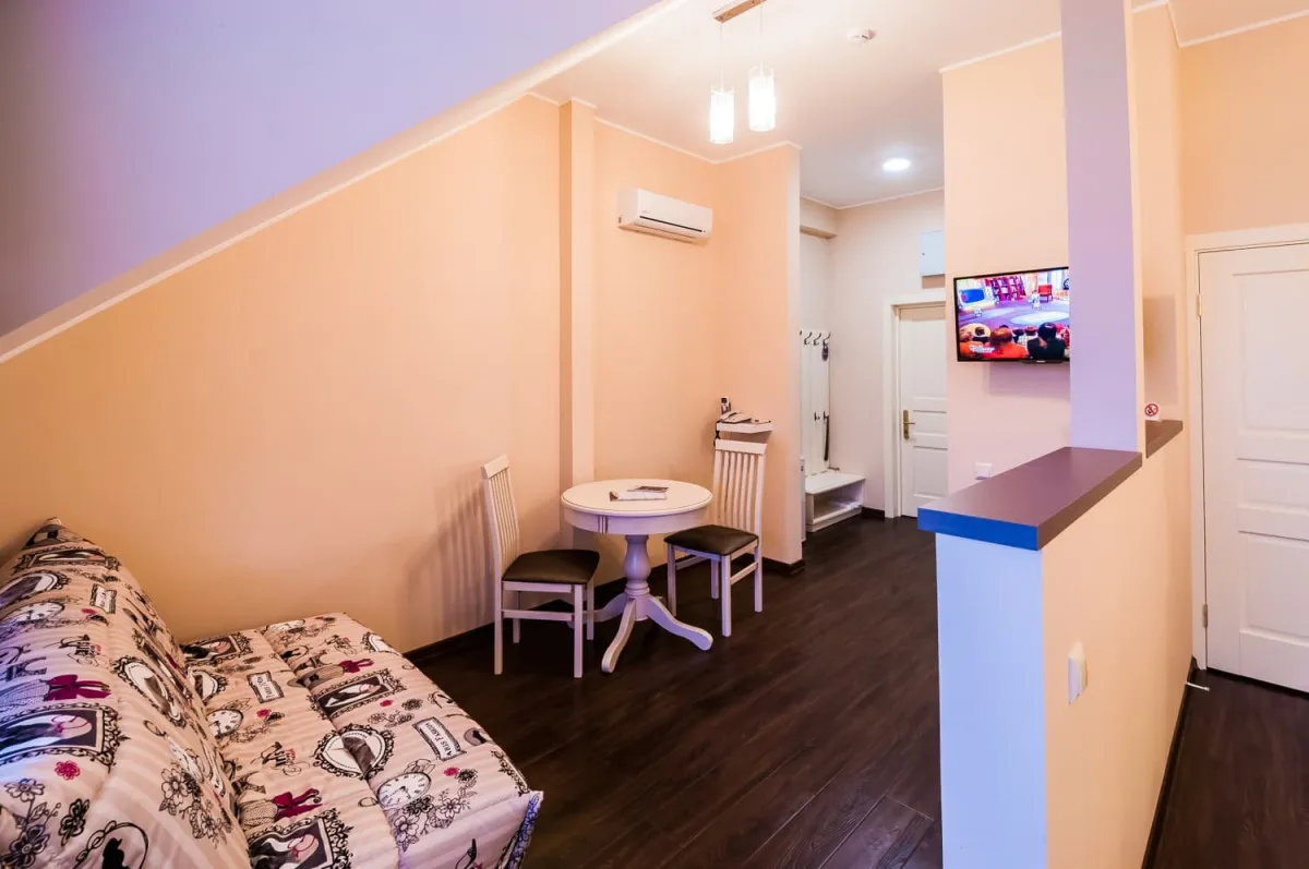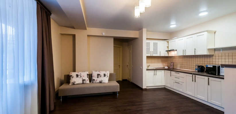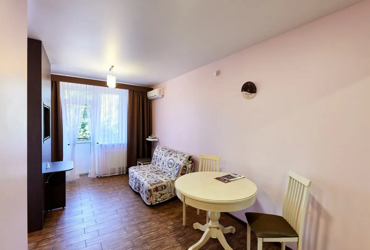 30 м2, 1 кровать, двухместный диван, нет варочной панели. В номере предусмотрено 1 или 2 дополнительных места. Количество гостей: до 4Комплимент (с балконом)