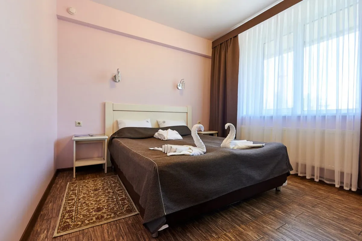 48 м2, 2 комнаты, 1 кровать, двухместный диван. В номере предусмотрено 1 или 2 дополнительных места. Количество гостей: до 4