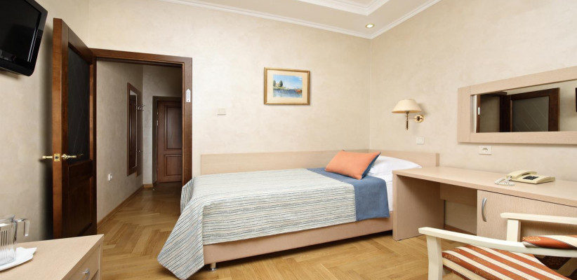 Санаторий состоит из главного корпуса, люкс-корпуса, коттеджа № 4 и коттеджа № 1 эконом.Одноместный «Стандарт» (Главный корпус)