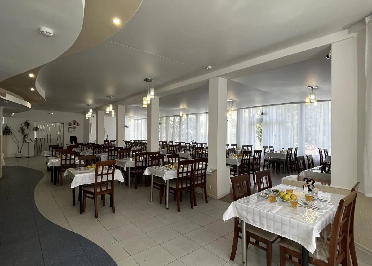 Комплекс состоит из двух зданий: основного 7-этажного корпуса (6 жилых этажей) с лифтом и дополнительного 4-этажного здания. Такое размещение позволяет компактно организовать проживание и лечебную базу.