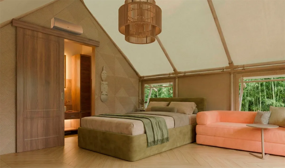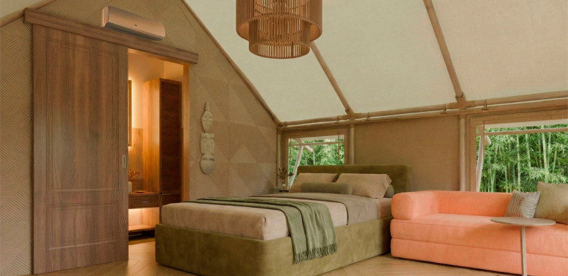 Номерной фонд представлен отдельно стоящими домами нескольких категорий: двухместные домики «Стандарт», дома категории «Комфорт», рассчитанные на размещение до трех человек, а также просторные шале у вулканической реки, предназначенные для проживания до четырех гостей. Архитектура комплекса гармонично вписана в природный ландшафт острова.