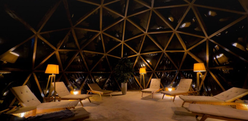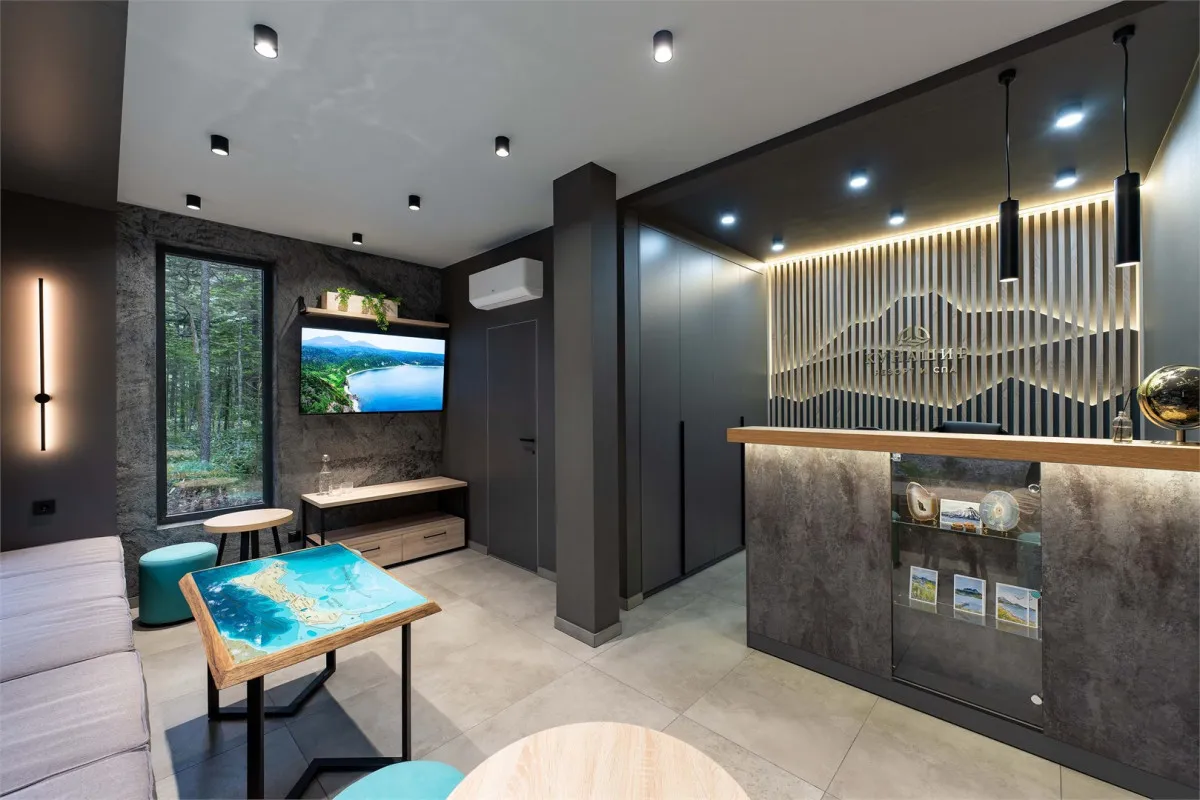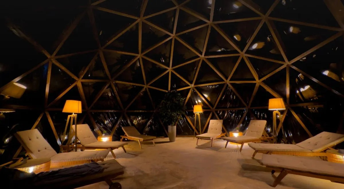 СПА-комплекс объединяет несколько форм отдыха и восстановления. Три открытых термальных бассейна наполнены минеральной водой из недр вулкана Менделеева и имеют различную температуру. Один из бассейнов обогащен кремнием. Инфраструктура также включает русскую баню на дровах с мягким паром, хаммам с ароматами лесных трав, кабинет СПА-терапий с массажными и авторскими процедурами, а также лаунж-зону под прозрачным куполом с видом на лес и звездное небо. В лаунже расположен фитобар с травяными чаями, по утрам проводятся занятия йогой.