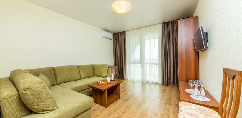 21 м2, вид на бассейн или море, двуспальная кровать. Доп. место - кресло-кровать. Количество гостей: 2+2Люкс 2-комнатный
