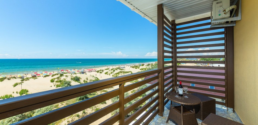 50-51 м2, панорамный вид на море, двуспальная кровать, гостиная, детская. Доп. место - диван, детская двухъярусная кровать. Количество гостей: 2+4