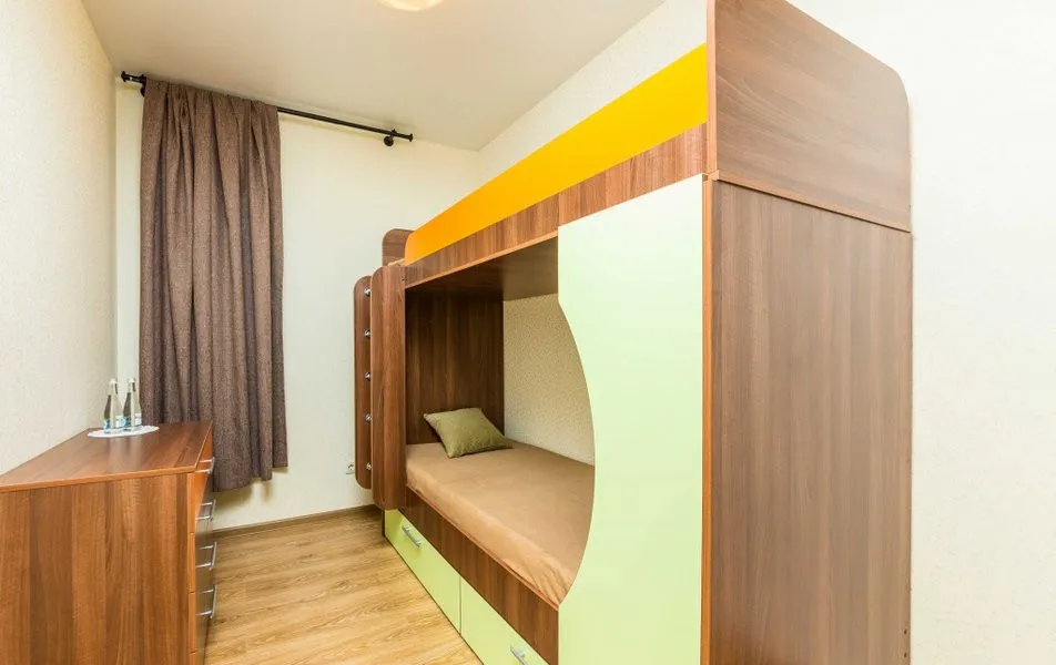 34 м2, вид во двор, двуспальная кровать. Доп. место - диван-кровать в гостиной. Количество гостей: 2+2Люкс Семейный 3-комнатный