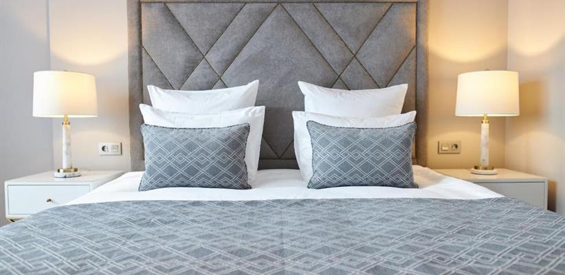 Люкс премиум площадью 52 кв.м., уютный номер с отдельной спальной комнатой и гостиной, с двуспальной кроватью с постельным бельем премиум-класса, максимальное размещение 2 чел.