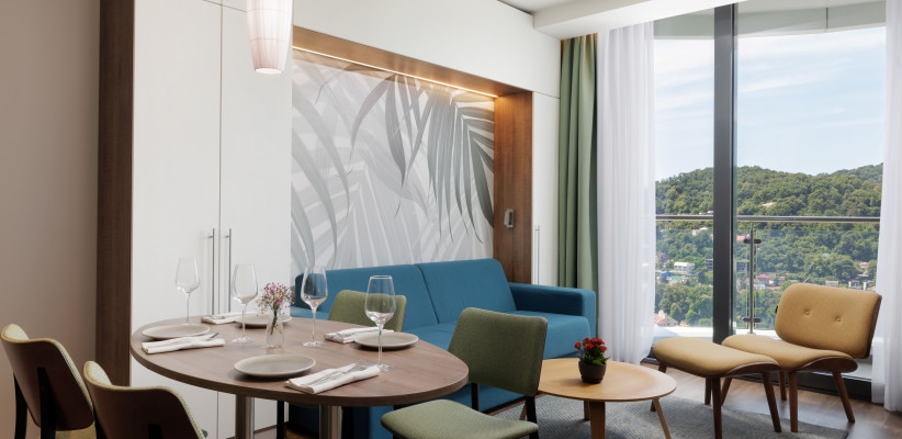 Интерьеры выполнены по проектам архитектурного бюро Front Architecture и студии Sundukovy Sisters – лауреатов международной премии Gold Key Awards. Пространства отеля сочетают функциональность, современную эстетику и курортную атмосферу.
