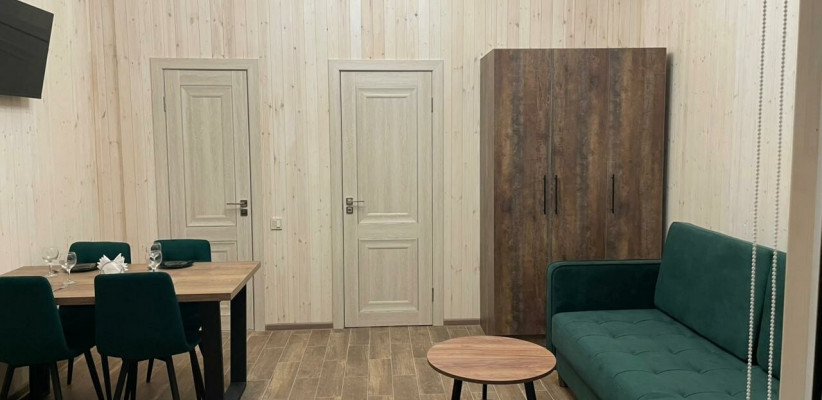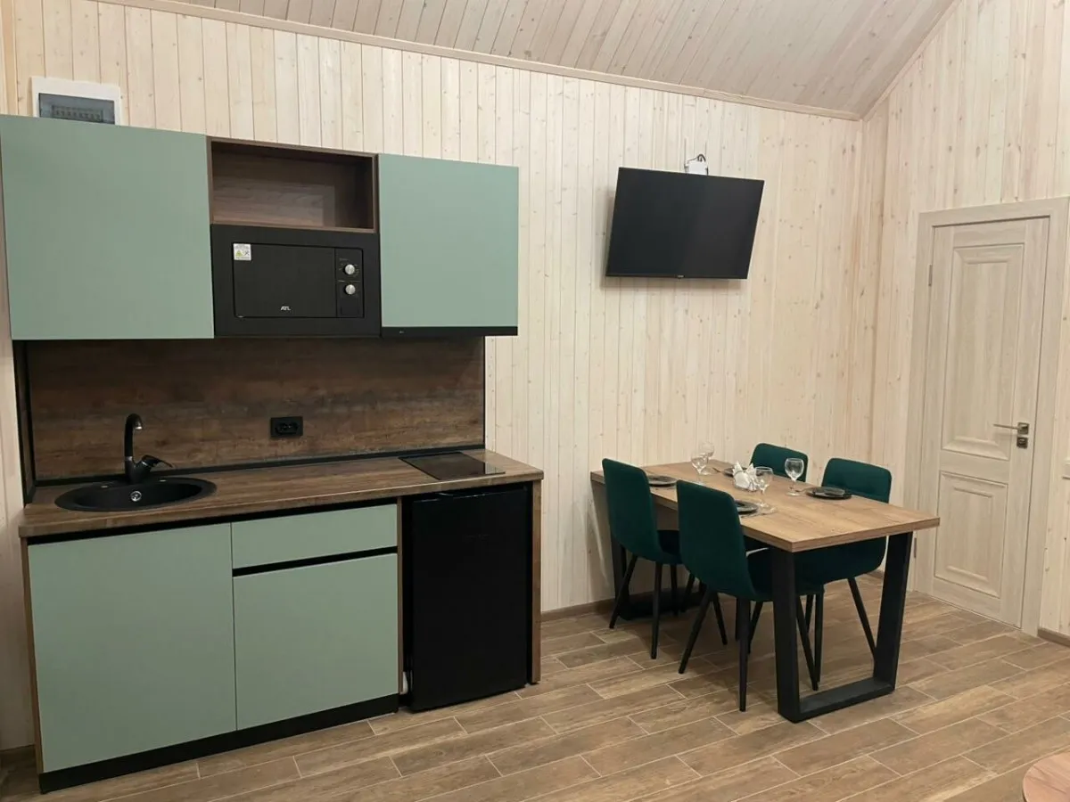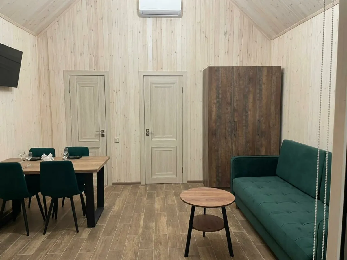 40 м2, спальня, гостиная с кухонной зоной, двуспальная кровать, двуспальный диван, терраса. Количество гостей: 4Экодом на 5 гостей