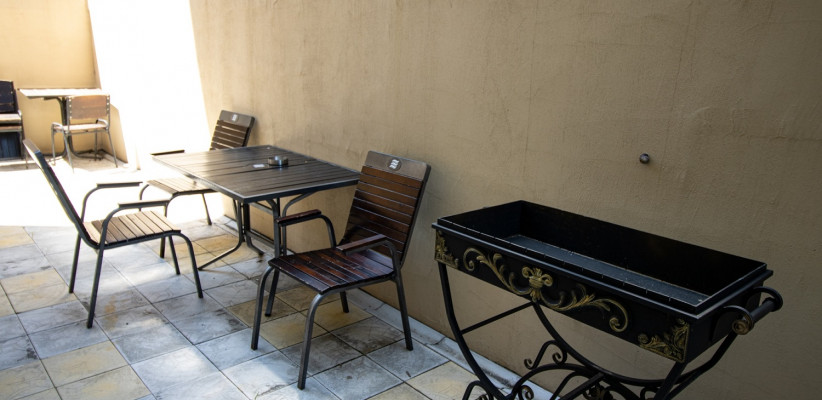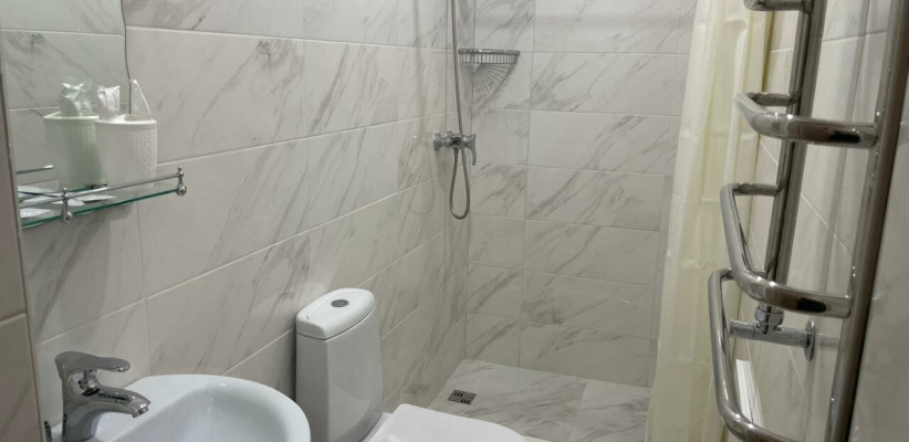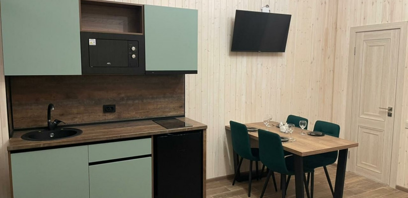 43 м2, спальня, гостиная с кухонной зоной, двуспальная кровать, двуспальный диван, кресло-кровать, терраса. Количество гостей: 5