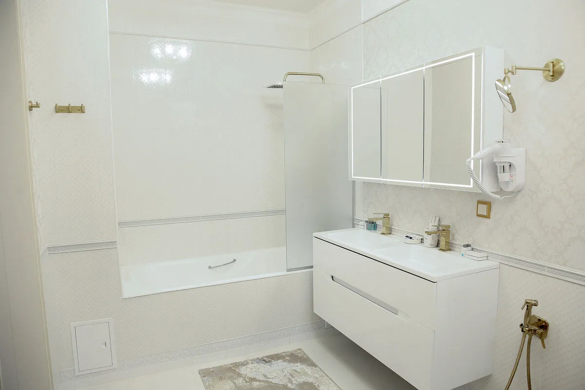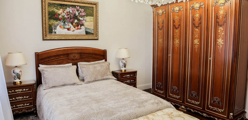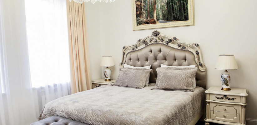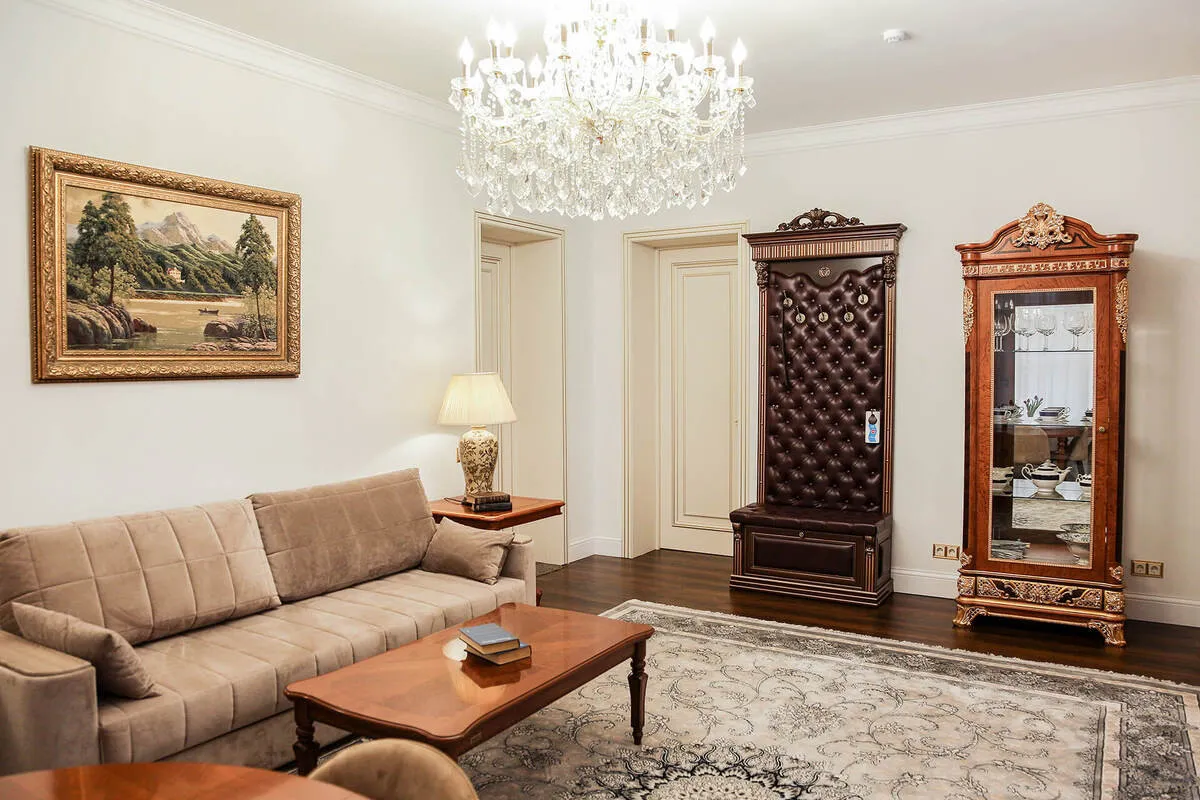 50 м2, две двуспальные кровати, диван, гостиная, рабочая зона. Количество гостей: 5.Люкс трехкомнатный