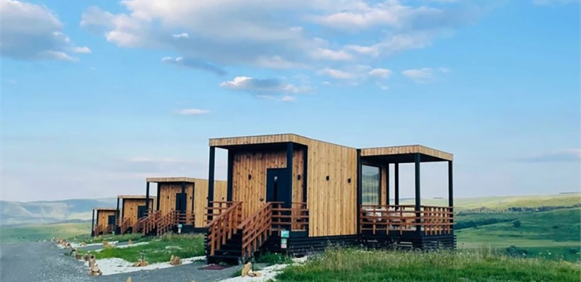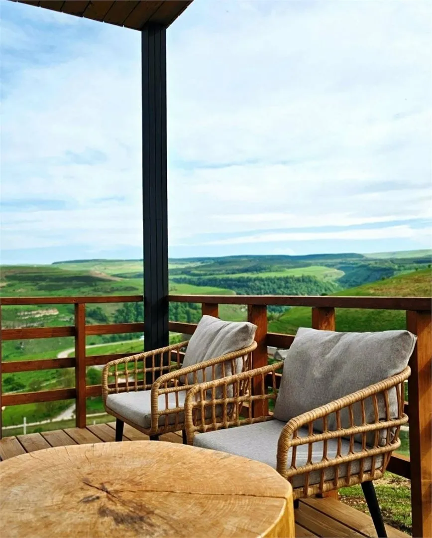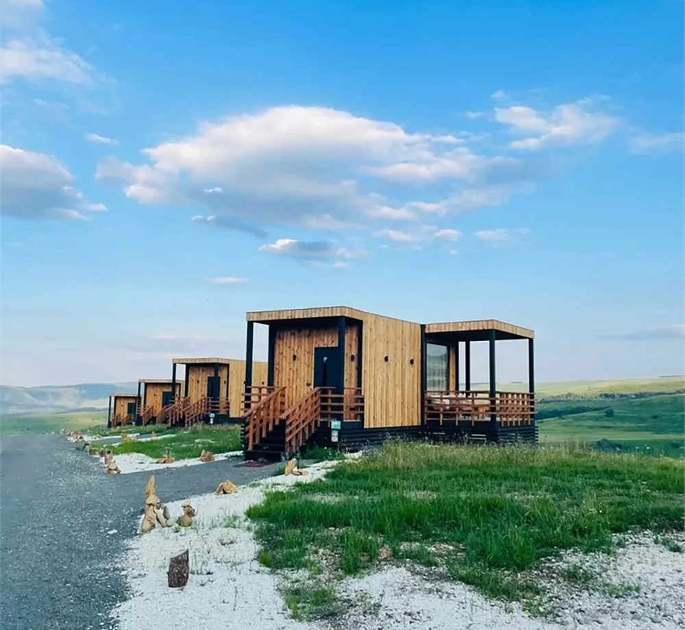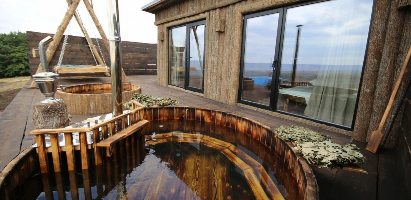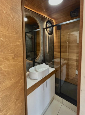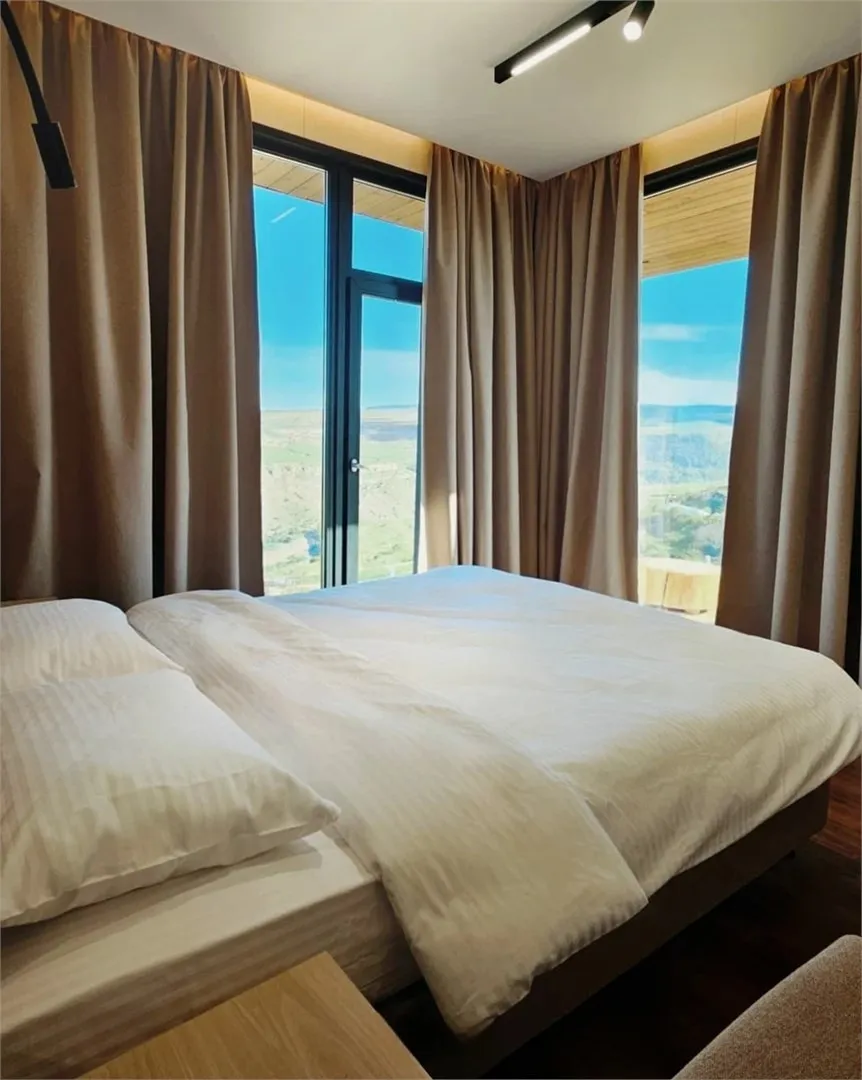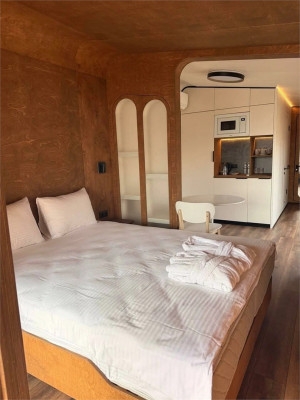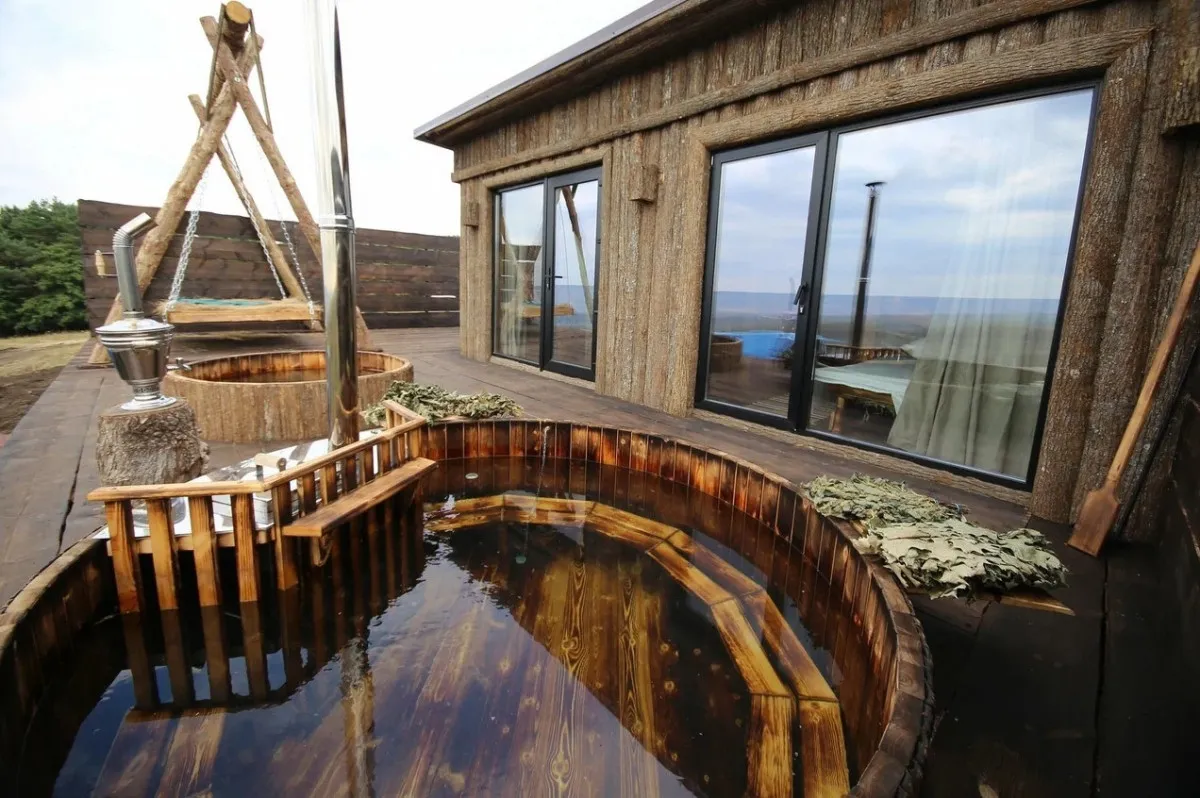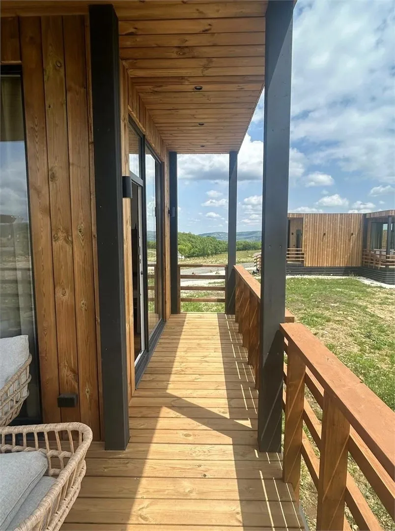 60 м2, терраса (30 м2), два спальных модуля, спальня и гостиная с зоной отдыха и обеденной зоной. Общая терраса и гостиная столовая. Количество гостей: 5