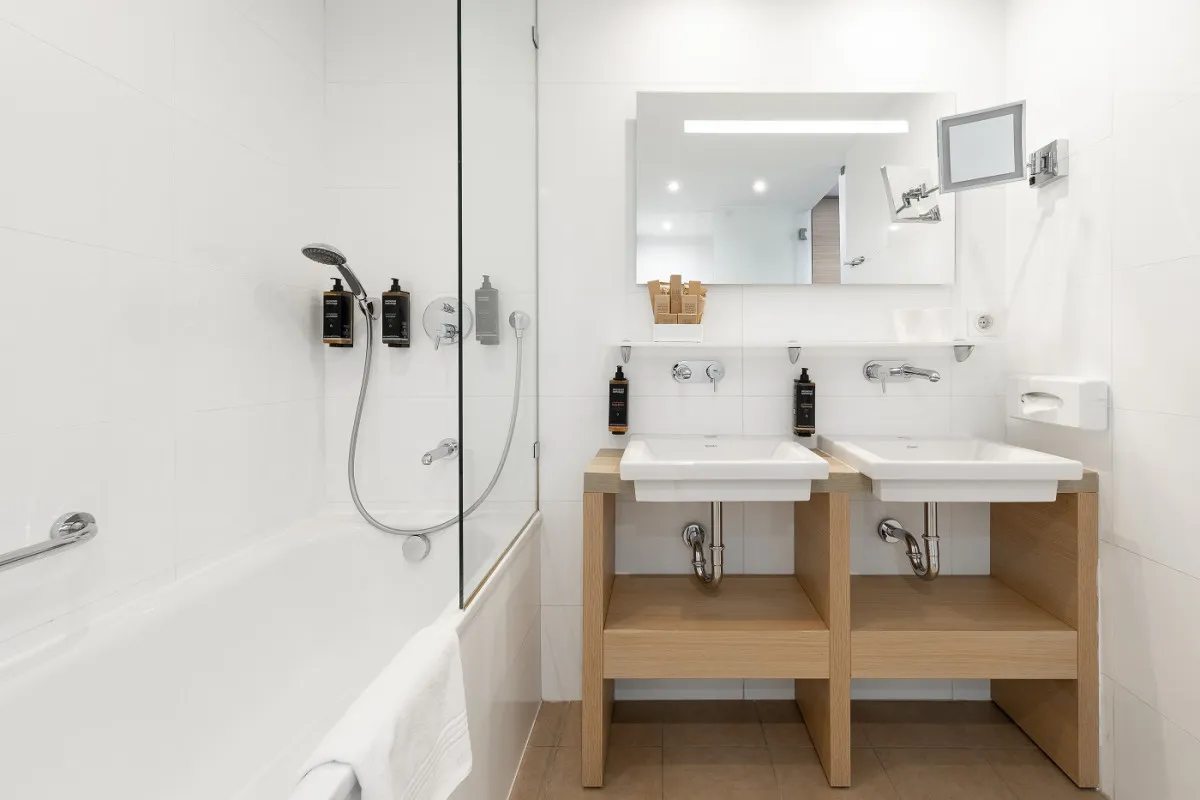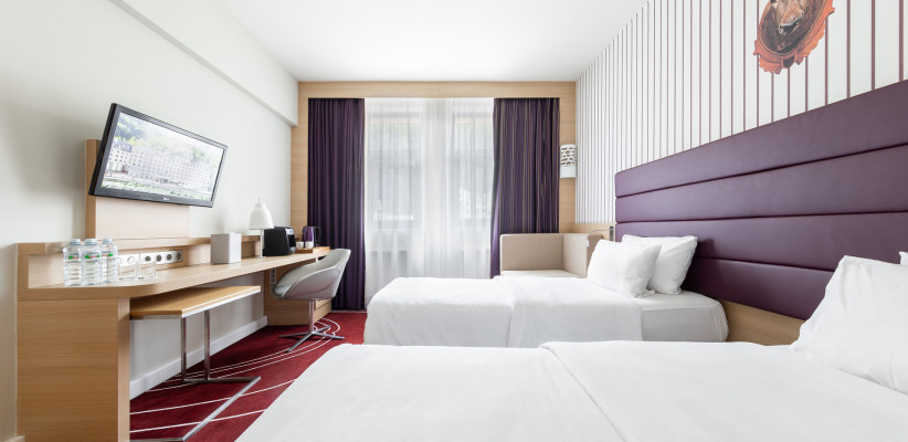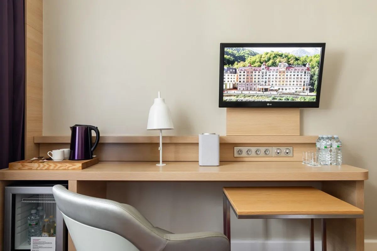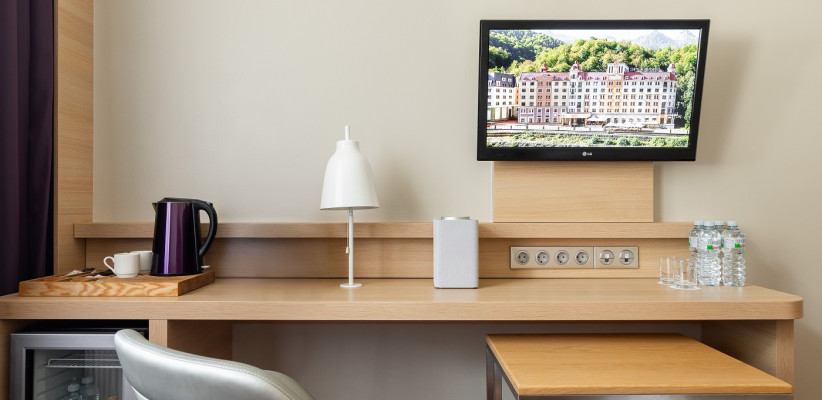 24 м2, вид на горную реку Мзымта, одна двуспальная кровать, раскладывающаяся софа и рабочая зонаПривилегия твин с видом на реку