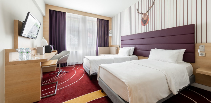 24 м2, вид на горную реку Мзымта, две односпальные кровати и рабочая зонаЛюкс с видом на лес