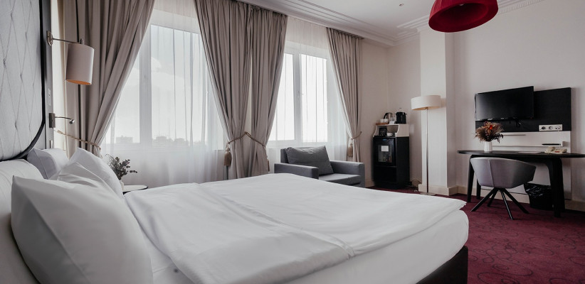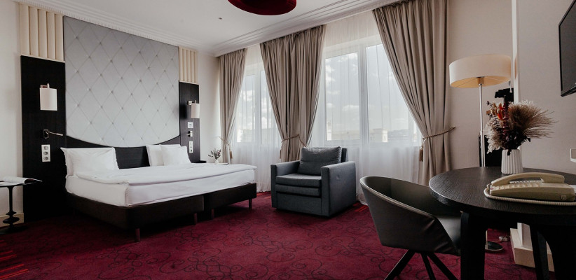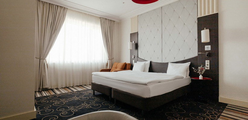30 м², с видом на город или реку Дон (преимущественно верхние этажи), 1 спальня, 1 двуспальная кровать king size или 2 односпальные кровати, рабочая зона, в некоторых номерах софа, количество гостей: 2 взрослых + 2 детейSuite