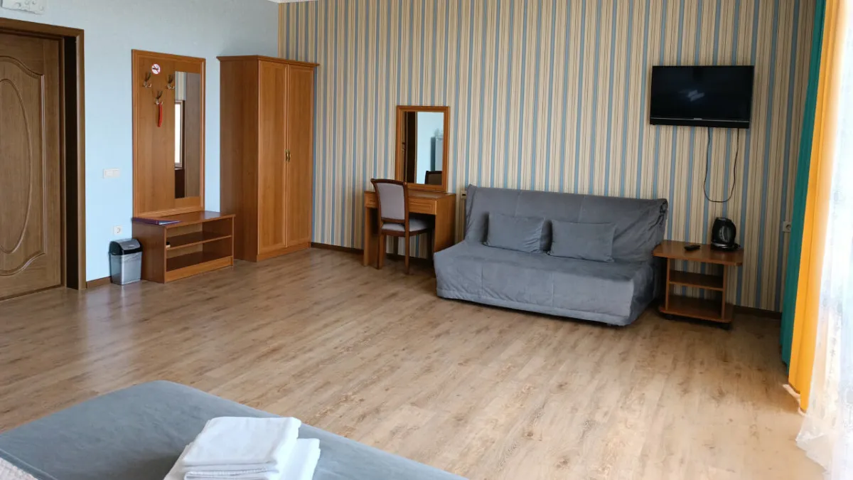 43 м2, балкон, вид на море, двуспальная кровать или две односпальные кровати, диван-кровать., кухонный уголок. Количество гостей: макс. 2