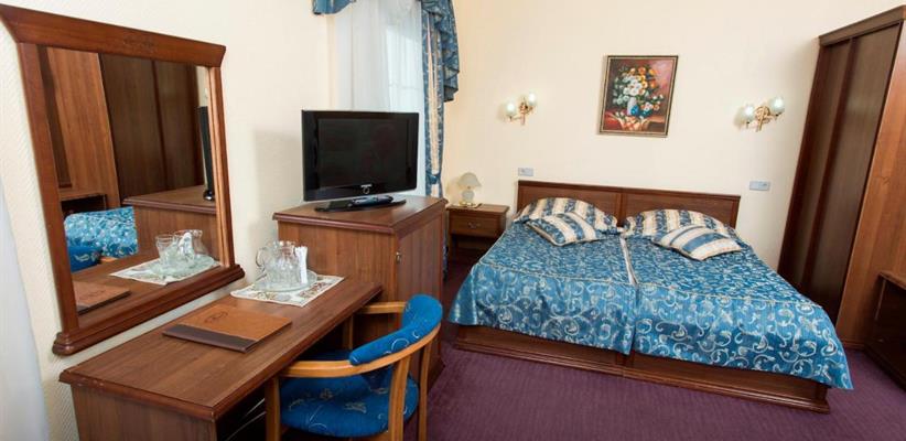 Джуниор сюит (Полулюкс) – площадь 25 кв. м, максимальное размещение 2 чел. Номер оснащён двумя односпальными кроватями.