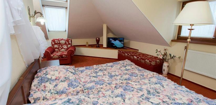 Джуниор сюит (Мансардный этаж) – площадь 39 кв. м, максимальное размещение 3 чел. Номер оснащён двумя односпальными кроватями.