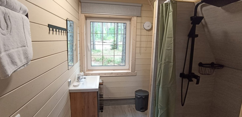57 м2, терраса, две двуспальные кровати и одна односпальная кровати, диван, обеденная зона, рабочая зона, частная баня. Количество гостей: 5.