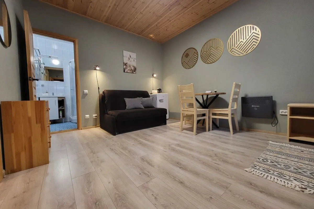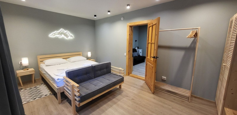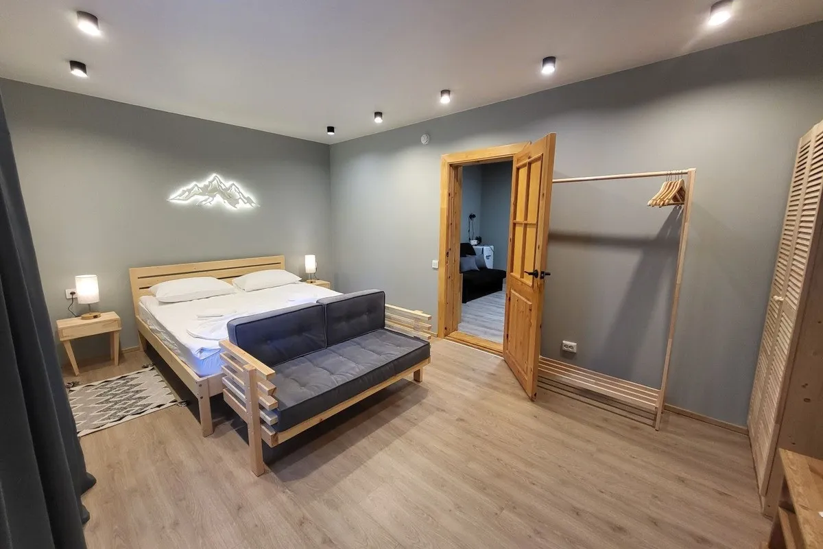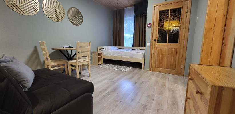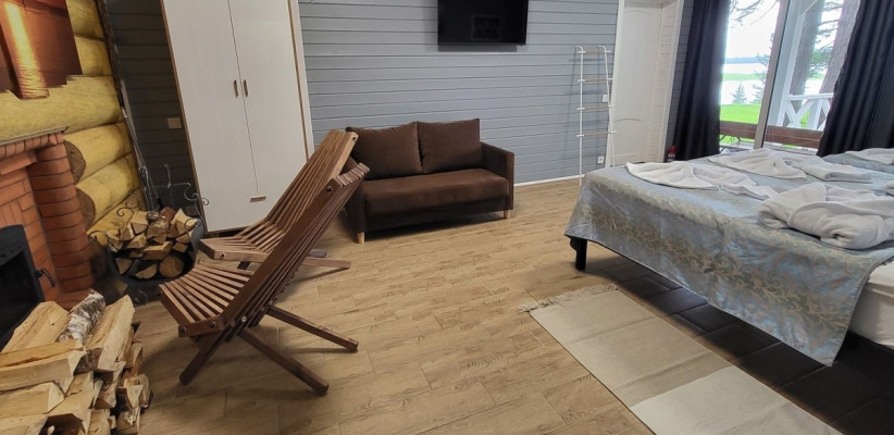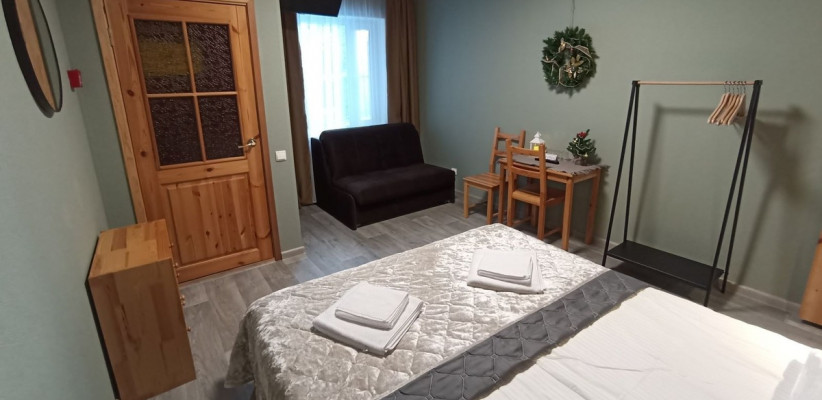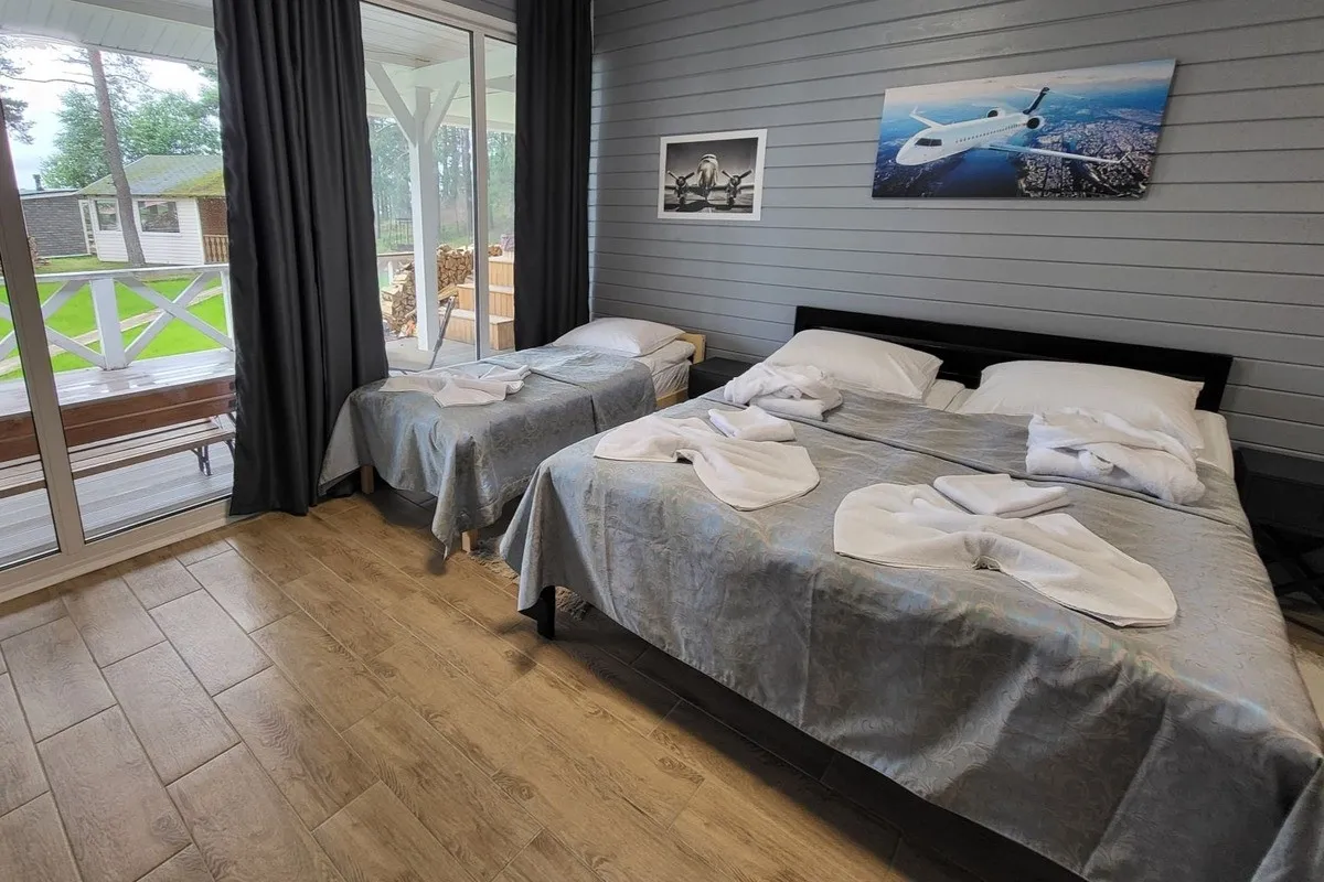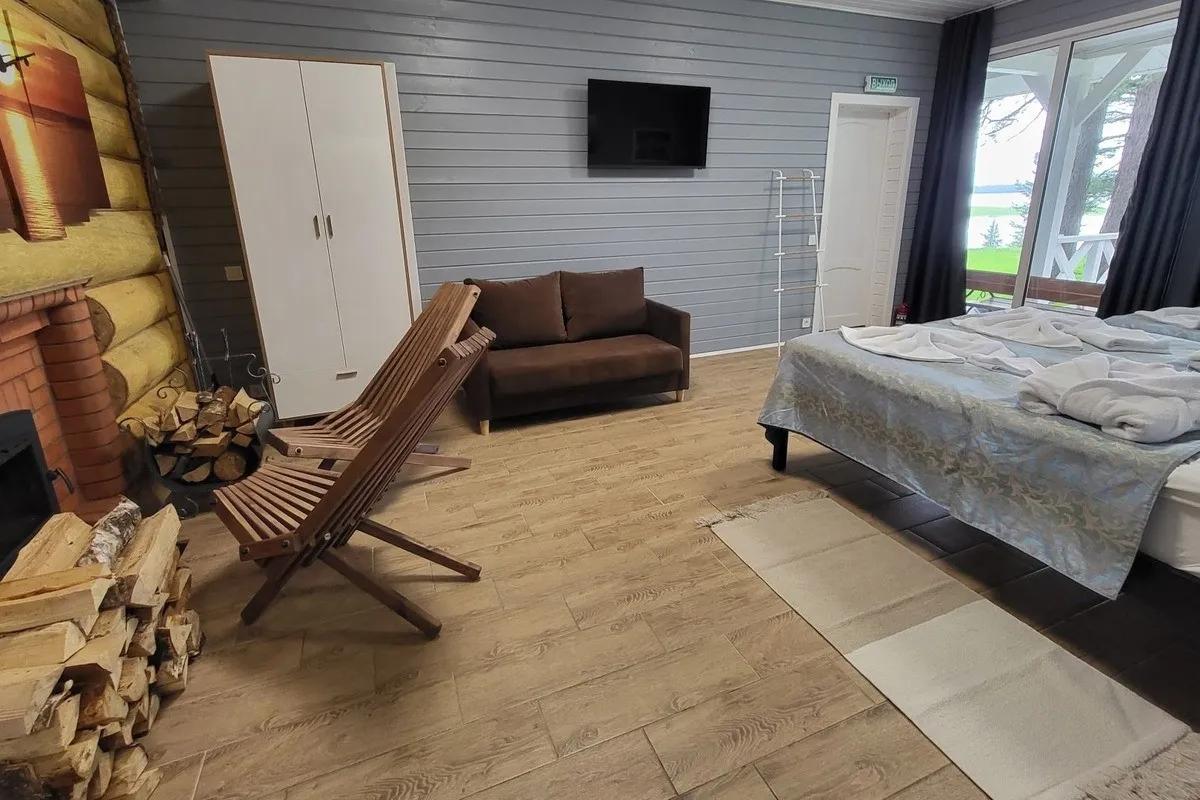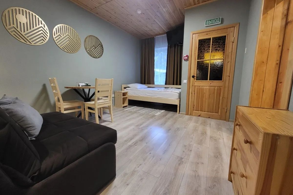 32 м2, две двуспальные кровати, диван, обеденная зона, рабочая зона. Количество гостей: 4.Family Cottage