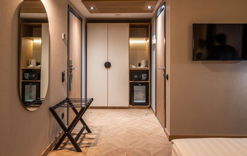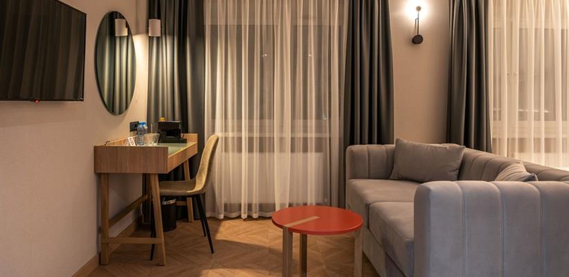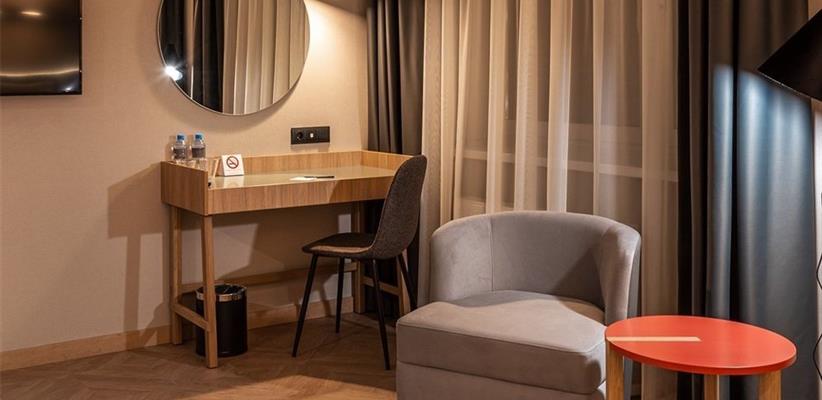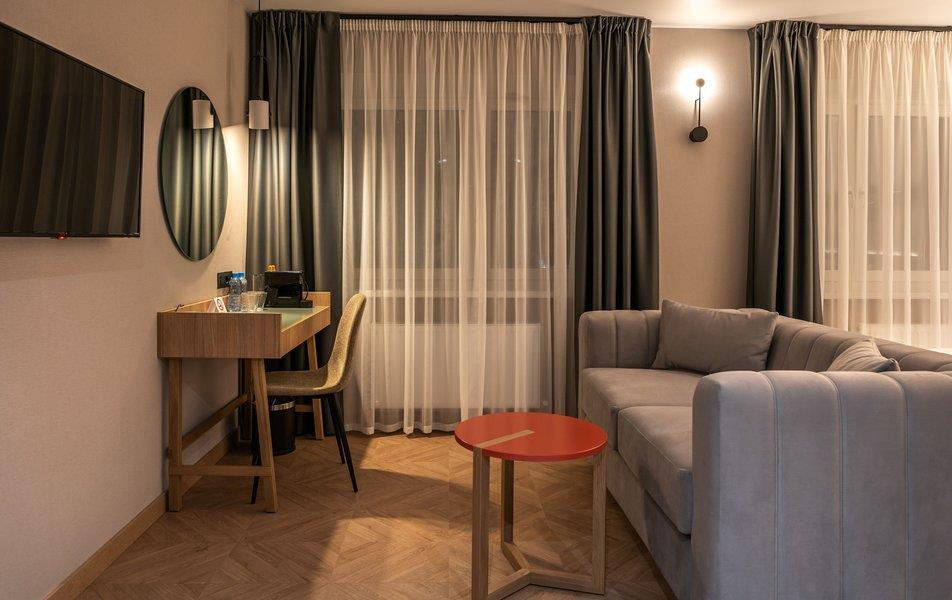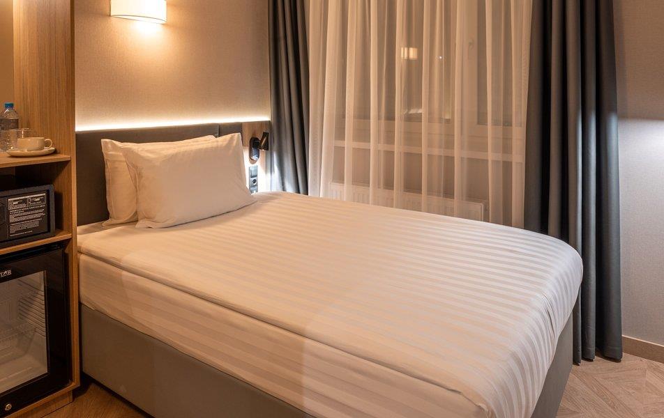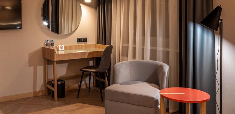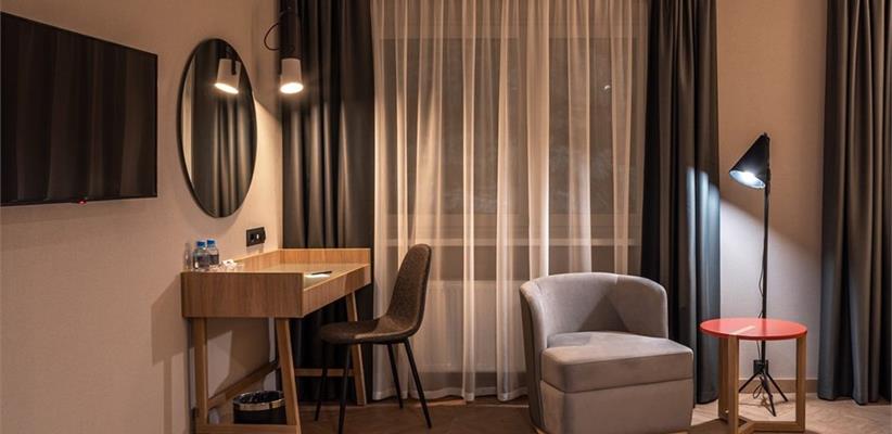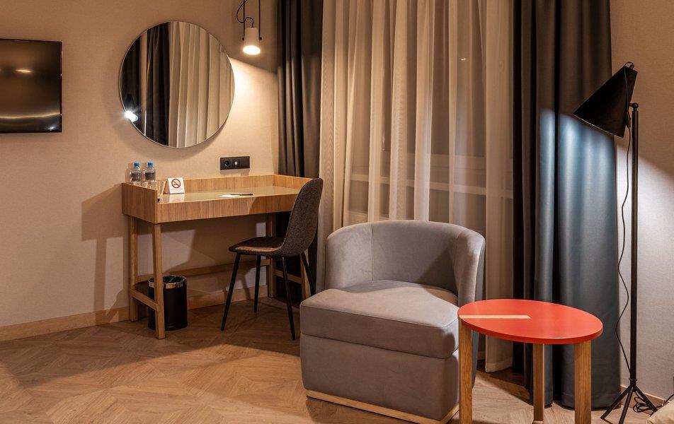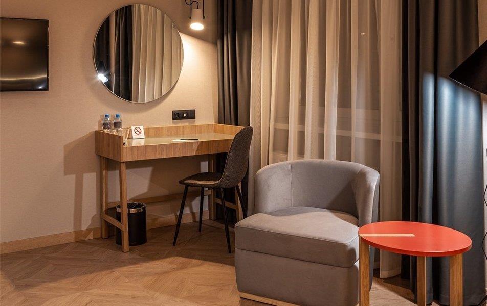 Бутик-отель «Муром» располагается в центральной части города. В окрестностях находятся Свято-Троицкий женский монастырь, Спасо-Преображенский мужской монастырь и Вознесенский собор. В шаговой доступности функционируют магазины и несколько кафе. В 1,5 километрах протекает река Ока. Расстояние до аэропорта составляет 155 километров. Добраться до железнодорожного вокзала можно за 5 минут пешком. Номерной фонд разного уровня комфорта и вместимости расположился в 4-этажном здании с лифтом. В комнатах установлена удобная мебель для отдыха, есть места для хранения одежды. К услугам гостей телевизор, кондиционер, мини-холодильник, сейф, электрический чайник, телефон, Wi-Fi. Санузел индивидуальный, с душем, полотенцами, туалетными принадлежностями и феном. На территории отеля работает кафе, в котором можно насладиться вкусными завтраками или приятно провести вечер. Доступен заказ еды и напитков в номер. Крупногабаритные вещи можно сдать в камеру хранения багажа. Стойка регистрации круглосуточная. Для личного транспорта гостей предусмотрена парковка. Маленьким постояльцам предлагаются стульчики для кормления, а также возможна установка детских кроваток в номер. Завтрак – Прачечная Рестораны и бары: room service, ресторан Бытовые службы: глажка, стирка Заказ: еды в номер, трансферов Как добраться: Самолетом до а/п г. Нижний Новгород, далее трансфер отеля. Поездом до ж/д вокзала г. Муром, далее автобусом №2 (26) от ост. «Железнодорожный вокзал» до ост. «Кинотеатр Прогресс», далее 500 м пешком. Рекомендуем заказывать трансфер.