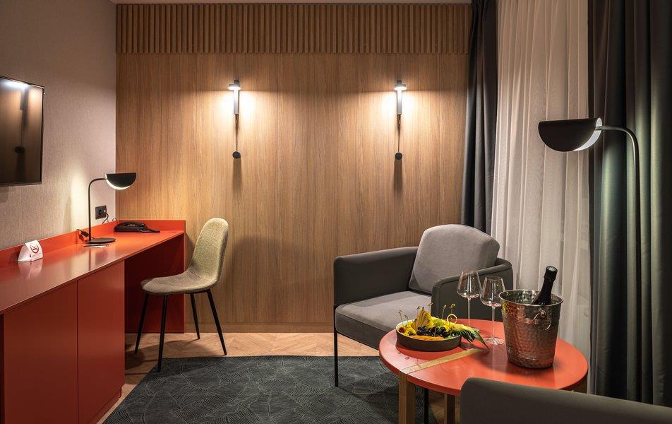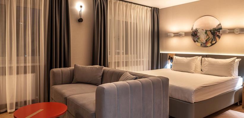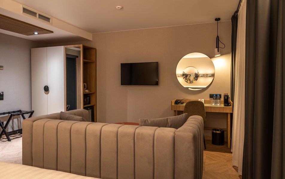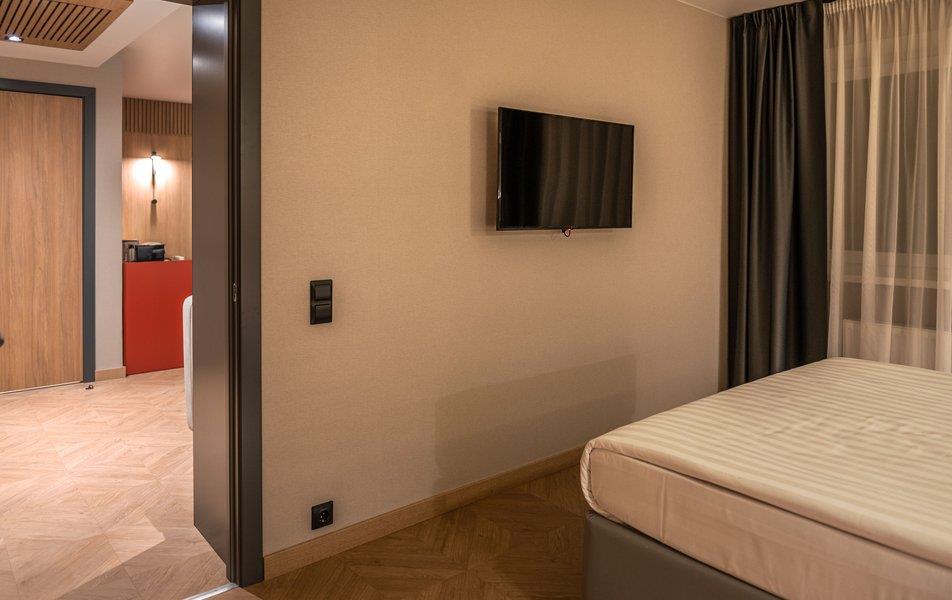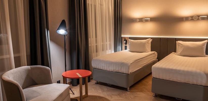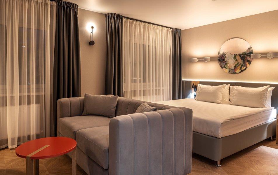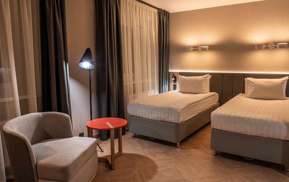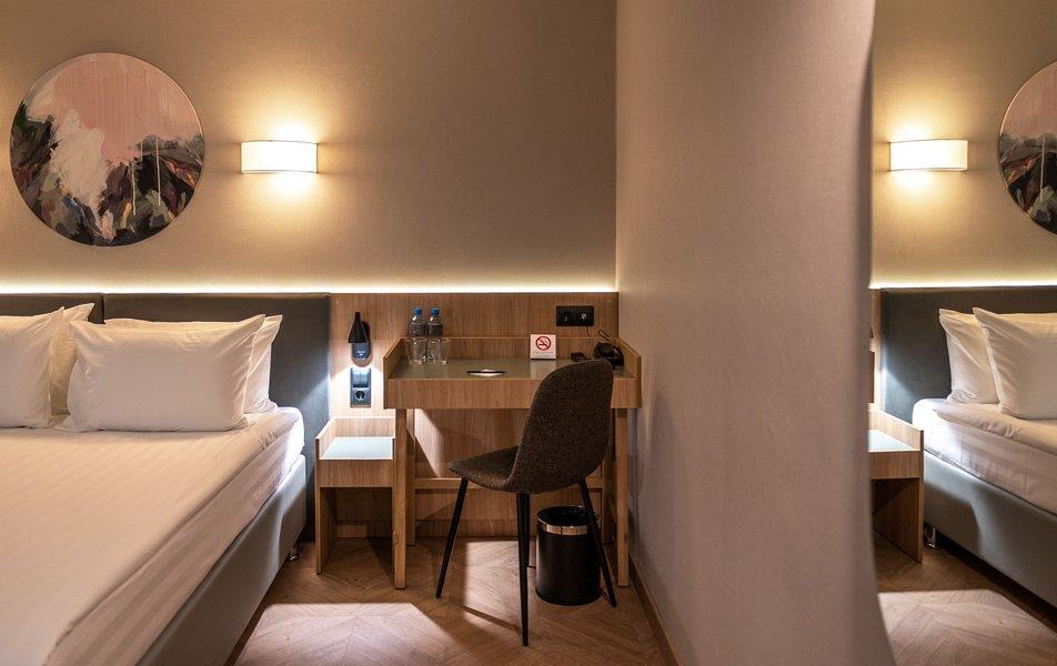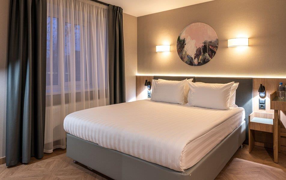 Бутик-отель «Муром» располагается в центральной части города. В окрестностях находятся Свято-Троицкий женский монастырь, Спасо-Преображенский мужской монастырь и Вознесенский собор. В шаговой доступности функционируют магазины и несколько кафе. В 1,5 километрах протекает река Ока. Расстояние до аэропорта составляет 155 километров. Добраться до железнодорожного вокзала можно за 5 минут пешком. Номерной фонд разного уровня комфорта и вместимости расположился в 4-этажном здании с лифтом. В комнатах установлена удобная мебель для отдыха, есть места для хранения одежды. К услугам гостей телевизор, кондиционер, мини-холодильник, сейф, электрический чайник, телефон, Wi-Fi. Санузел индивидуальный, с душем, полотенцами, туалетными принадлежностями и феном. На территории отеля работает кафе, в котором можно насладиться вкусными завтраками или приятно провести вечер. Доступен заказ еды и напитков в номер. Крупногабаритные вещи можно сдать в камеру хранения багажа. Стойка регистрации круглосуточная. Для личного транспорта гостей предусмотрена парковка. Маленьким постояльцам предлагаются стульчики для кормления, а также возможна установка детских кроваток в номер. Завтрак – Прачечная Рестораны и бары: room service, ресторан Бытовые службы: глажка, стирка Заказ: еды в номер, трансферов Как добраться: Самолетом до а/п г. Нижний Новгород, далее трансфер отеля. Поездом до ж/д вокзала г. Муром, далее автобусом №2 (26) от ост. «Железнодорожный вокзал» до ост. «Кинотеатр Прогресс», далее 500 м пешком. Рекомендуем заказывать трансфер.