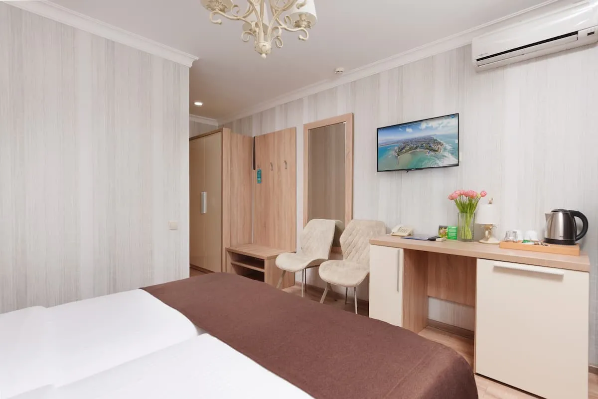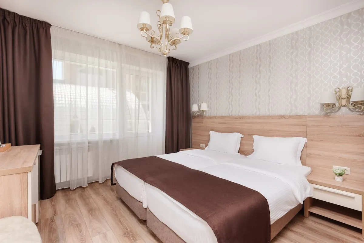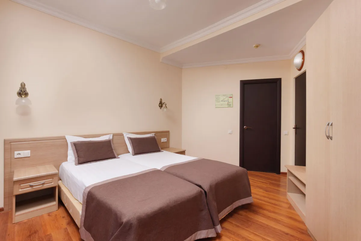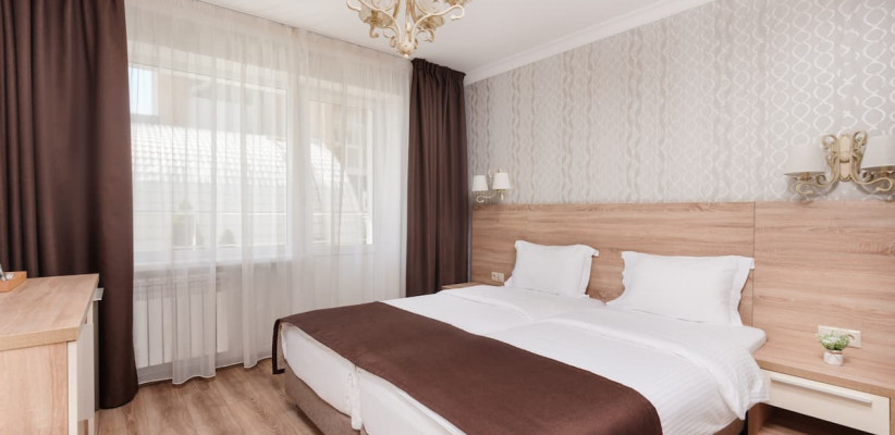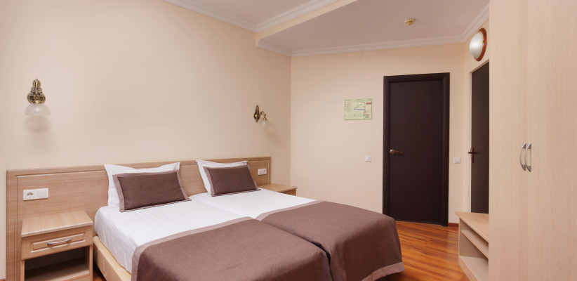 20 м2, две полутораспальные кровати, вид на город или во двор. Количество гостей: 2 взрослых + 1 ребенок на доп. месте (евро-раскладушка)Стандарт