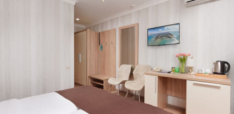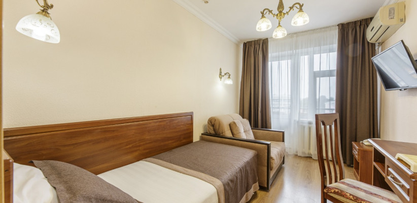14 м2, односпальная кровать. Количество гостей: 1 взрослый + 1 ребенок на доп. месте (кресло-кровать)Стандарт Семейный (2 корпус)