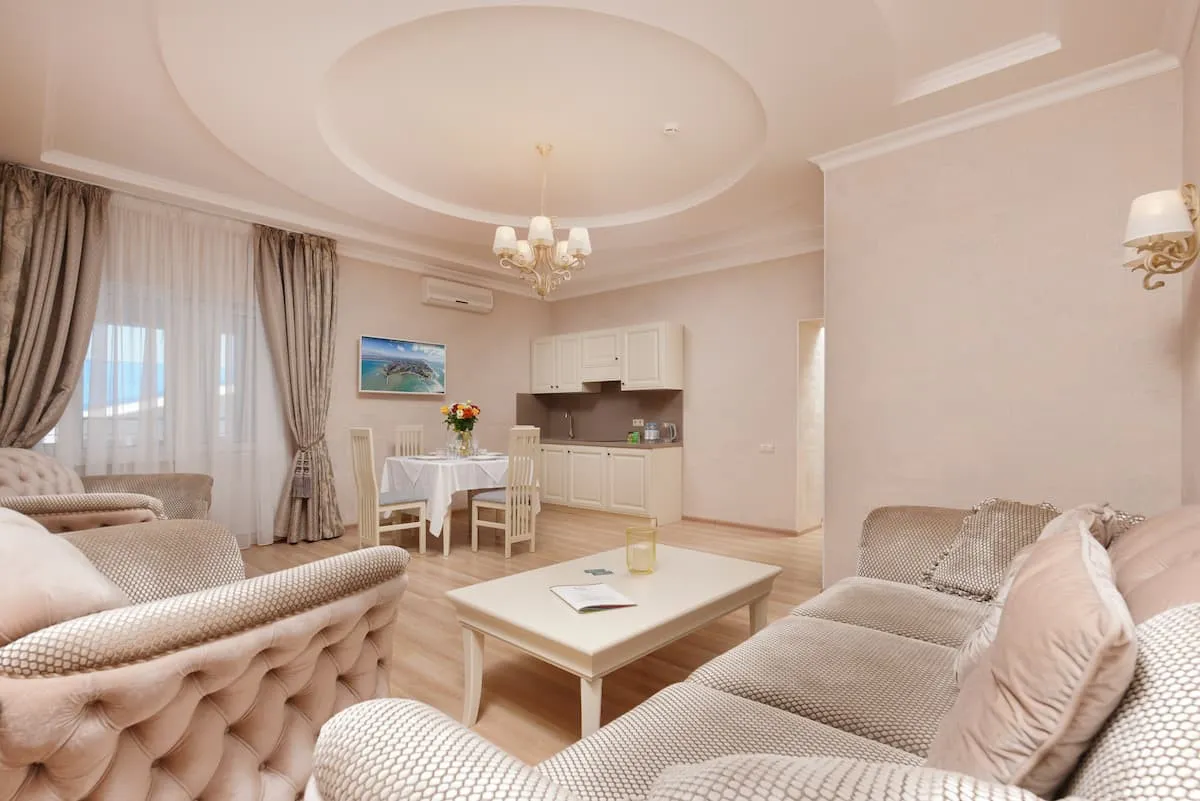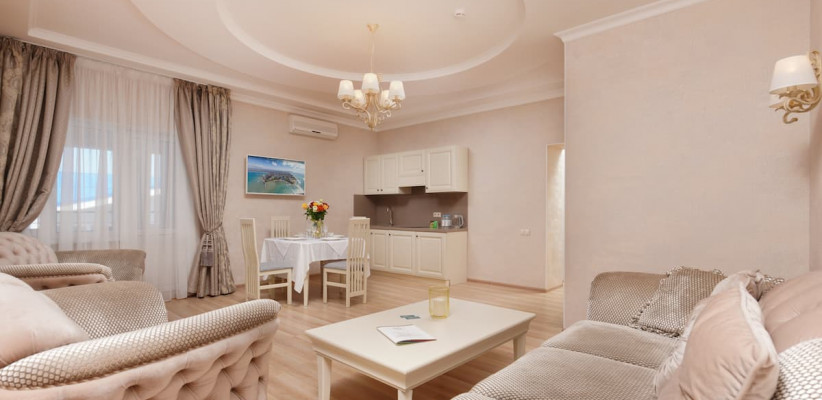60 м2, двуспальная кровать, отдельная гостиная с мягкой мебелью, балкон. Количество гостей: 4Апартаменты