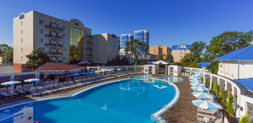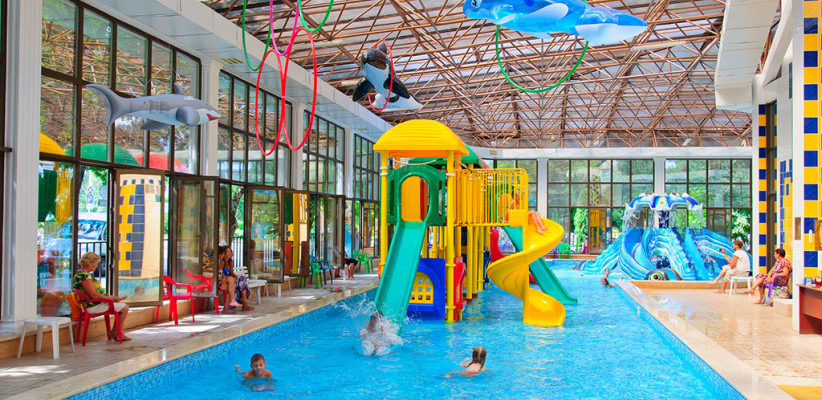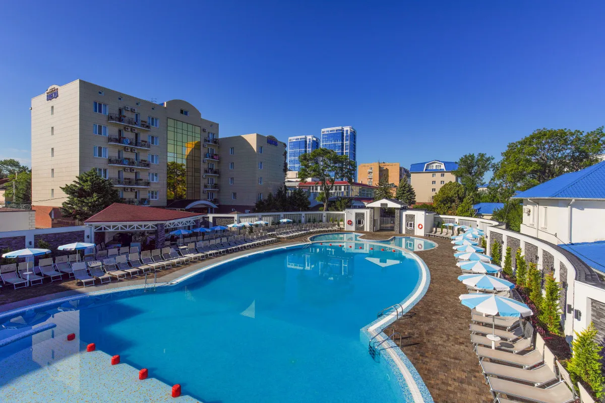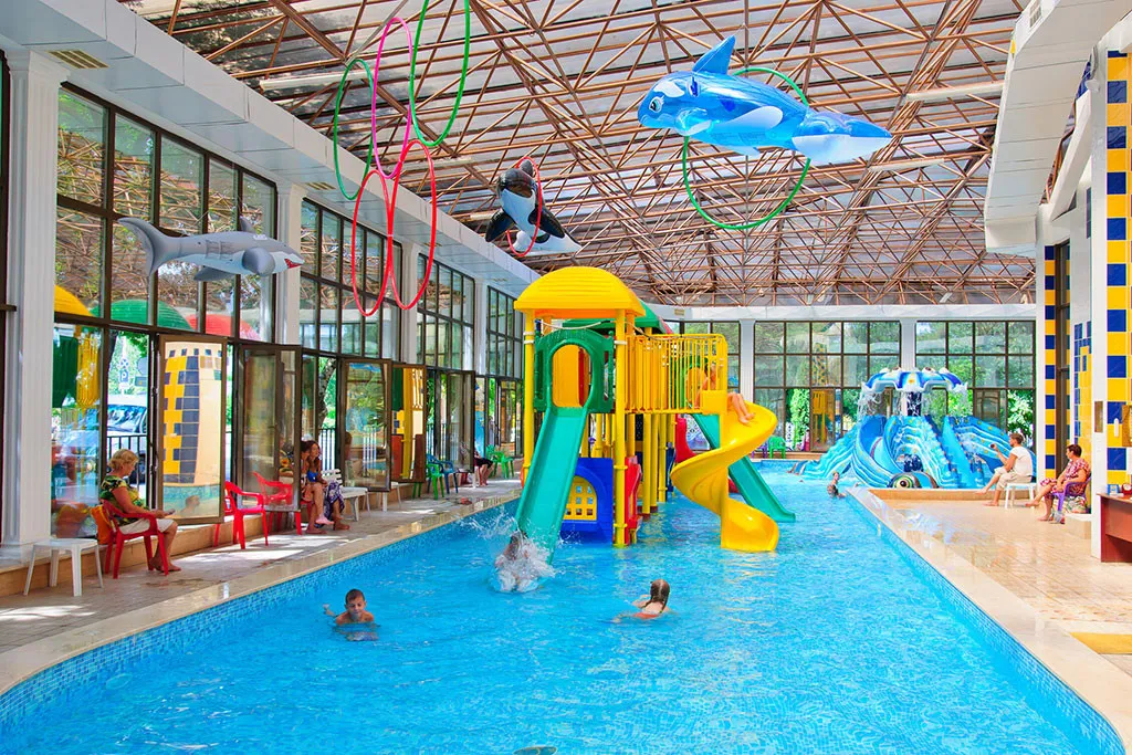 На территории расположен крытый бассейн с подогреваемой водой, открытый с морской водой, детский аквапарк «Осьминожка», бассейн при сауне и три джакузи в термокомплексе.
