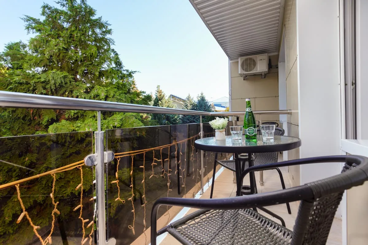 14 м2, односпальная кровать, балкон с видом на город или во двор. Количество гостей: 1 взрослый + 1 ребенок на доп. месте (кресло-кровать)Стандарт без балкона