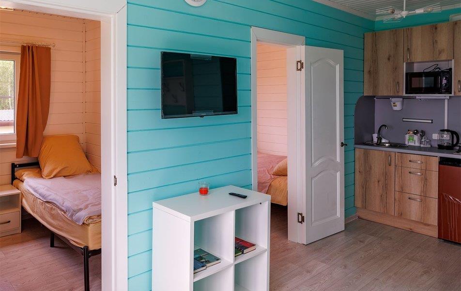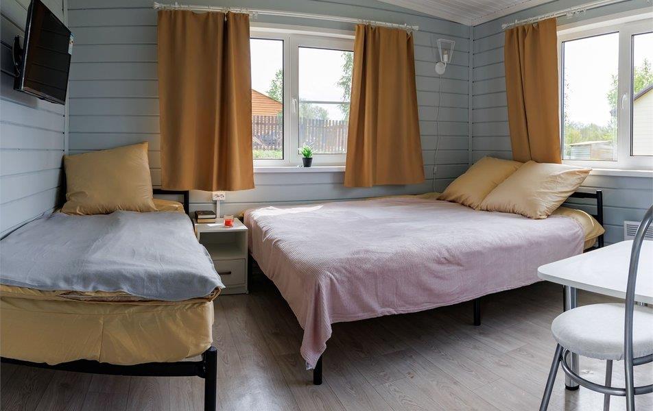База отдыха «Новинка» находится в одноименной деревне, расположенной на берегу небольшого озера Новинское на юге Карелии в Олонецком районе. На другом берегу водоема – деревянная Георгиевская часовня, рядом проходит федеральная трасса Кола, а до Ладожского озера дорога займет чуть больше получаса. Комплекс разместился на благоустроенной территории в окружении соснового леса. Гостям для размещения предлагаются уютные одноэтажные домики, оснащенные всем необходимым для комфортного отдыха. В каждом номере предусмотрен санузел с душем, есть телевизор, электрочайник, мини-холодильник и вся необходимая мебель. На территории базы отдыха организована общая кухня, оснащенная необходимой посудой техникой, также есть мангальная зона, где отдыхающие могут пожарить мясо, и русская баня на дровах. Любители активного отдыха могут поиграть в настольный теннис, бадминтон и футбол, арендовать лодки и отправиться на прогулку по озеру. Для детей предусмотрена игровая площадка с горками и качелями. Без питания – Бани и сауны: банный комплекс, баня русская Аренда: беседка, мангал Дополнительно: бадминтон, настольный теннис Открытые площадки: поле для мини-футбола Прокат спортинвентаря: лодки Инфраструктура для детей: игровая площадка Как добраться: Самолетом до аэропорта г. Петрозаводска, далее 1,7 км до остановки «Бесовец», далее на автобусе №117Б,100/112,102,103 до остановки «Автовокзал Петрозаводск», далее на автобусе №517,518 до остановки «Поворот на Новинку», далее 1,7 км до базы отдыха. Поездом до ж/д вокзала ст. Новинка, далее 279 м до базы отдыха. Рекомендуем заказывать трансфер.