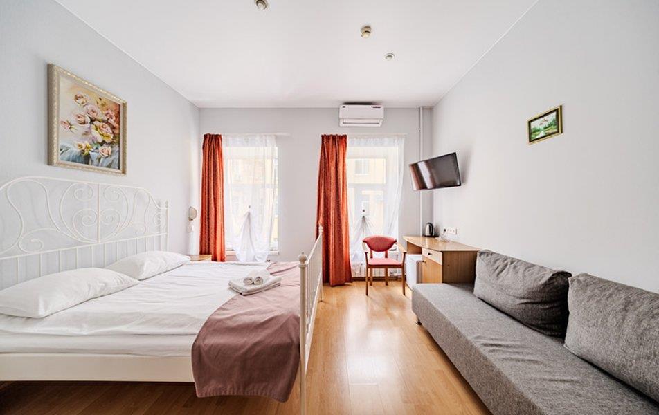 Отель «Октавиана» располагается в Санкт-Петербурге на Невском проспекте. Недалеко протекает река Фонтанка. В 5 минутах ходьбы находятся станции метро Маяковская и Достоевская. В относительной близости располагаются такие достопримечательности, как Марсово поле, Летний сад, Аничков мост, Инженерный замок, Шереметьевский и Шуваловский дворцы. Насладиться вкусными блюдами европейской, русской и кавказской кухни можно в окружающих отель ресторанах. Расстояние до аэропорта составляет 22 километра, до железнодорожного вокзала – 1 километр. Отель расположился в угловом 5-этажном историческом здании на пересечении деловой и культурной жизни северной столицы. Номерной фонд представлен разным уровнем комфорта и вместимости. Светлые просторные комнаты оснащены удобной мебелью для отдыха, зоной для хранения одежды. В них есть кондиционер, телевизор со спутниковыми каналами, мини-холодильник, электрический чайник. Санузел индивидуальный для каждого номера. Гостям предоставляются полотенца, туалетно-косметические принадлежности. На территории отеля оборудована общая кухня для самостоятельного приготовления еды и горячих напитков. Стойка регистрации работает круглосуточно. Дополнительно можно воспользоваться трансфером, услугами прачечной. Гостям предлагается подобрать интересные экскурсионные туры по городу. Без питания – Рестораны и бары: общая кухня: холодильник, микроволновая печь, чайник и посуда Заказ: авиа и ж\д билетов, такси, трансферов, экскурсий Интернет: wi-fi в номерах, wi-fi на территории На стойке регистрации Прокат: бытового инвентаря, утюг: и гладильная доска Прокат: детские кроватки Как добраться: Самолетом до аэропорта Пулково (г. Санкт-Петербург), далее на рейсовом автобусе №39, до остановки «ст. м. Московская», далее на метро до станции «Владимирская», затем пройти 750 м до отеля. Поездом до ж/д вокзала Московский (г. Санкт-Петербург), далее на рейсовом автобусе №181 до остановки «Литейный проспект», далее пройти 90 м до отеля. Рекомендуем заказывать трансфер.