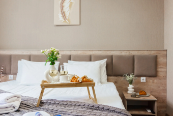 36-42 м2, гостиная, спальня. Большая двуспальная кровать в спальне, раскладывающийся диван в гостиной комнате. Предусмотрено дополнительное место для размещения ребенка/ взрослого. Количество гостей: 4