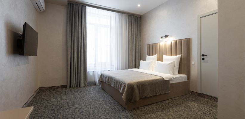 15 м2, двуспальная кровать размера «king-size», вид на внутренний двор. Количество гостей: 2Улучшенный стандарт