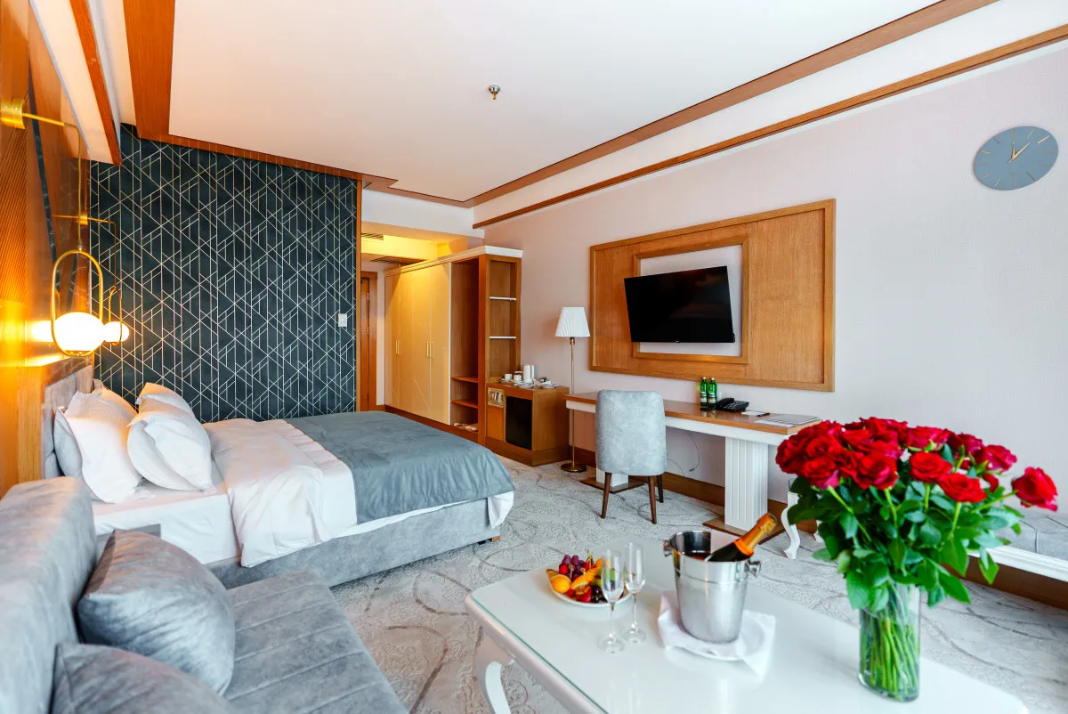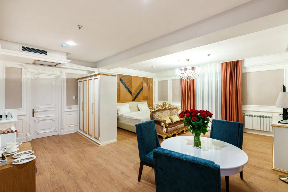 На территории комплекса гостей ждут бассейн 23 метра с каскадным водопадом, СПА-центр с хаммамом и финской сауной, современный тренажерный зал и медицинский центр с новейшим диагностическим оборудованием. Особую атмосферу создает ресторан «Кардамон» на десятом этаже, откуда открываются великолепные виды на окрестности, это не просто ресторан, а место, где гастрономия становится искусством, а отдых — истинным удовольствием.