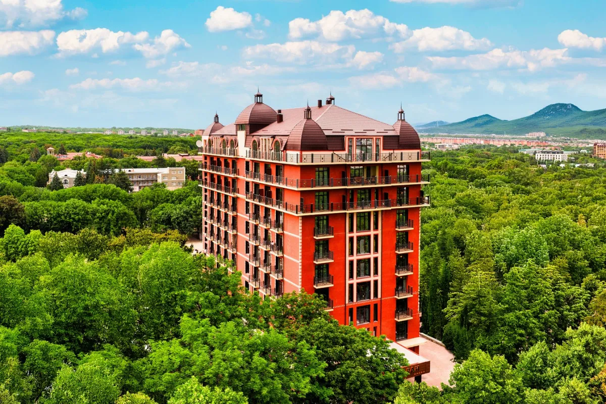 «Парк Шафран» 5* – новый современный премиум-санаторий 5* в сердце Ессентуков (открылся в июле 2025 года). Санаторий расположен в 5-ти минутах от минеральных источников, в историческом центре, напротив Курортного парка.