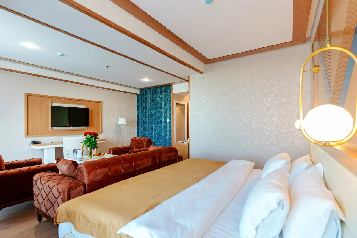Расположенный в десятиэтажном корпусе, санаторий предлагает гостям просторные номера с панорамными видами и превосходный сервис.