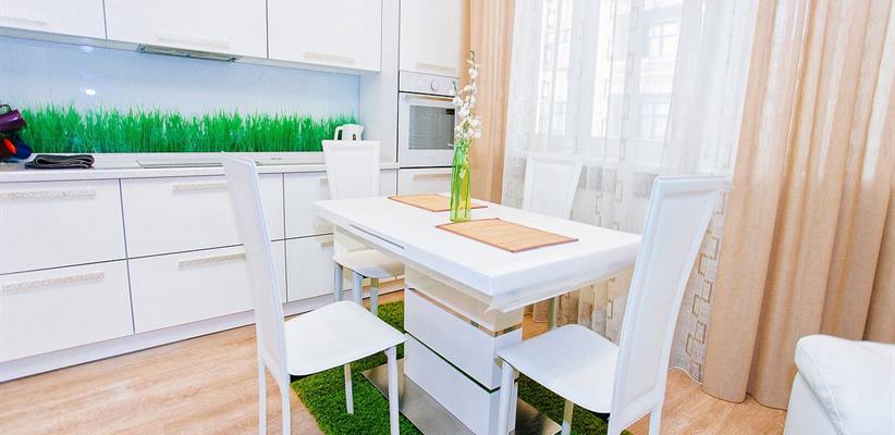 Двухкомнатная квартира (код #92): двуспальная кровать, диван, кресло, журнальный столик, электрический камин, телевизор, кухонный гарнитур, электрочайник, джакузи.