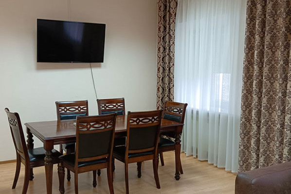 55 м2, двуспальная кровать, отдельная гостиная с диваном, вид на город. Количество гостей: 2