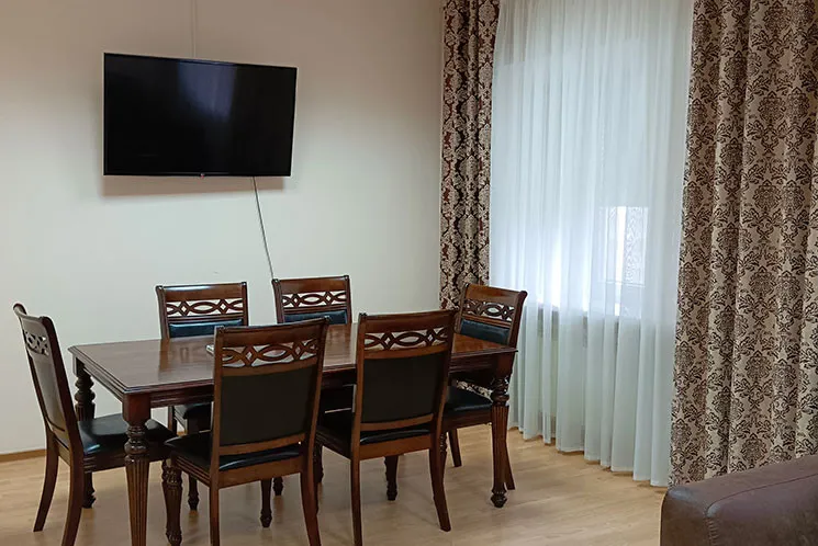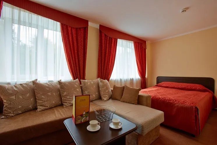 15 м2, двуспальная кровать. Количество гостей: 2Первая категория Полулюкс 2-х местный однокомнатный (1 кровать)