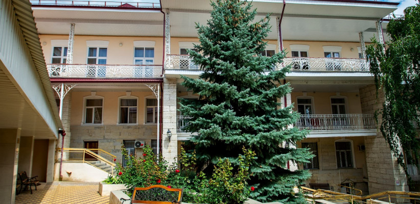 Медицинский центр расположен в историческом четырехэтажном здании первой половины XX века, что придает ему особую атмосферу и подчеркивает статус одного из знаковых лечебных учреждений курорта.